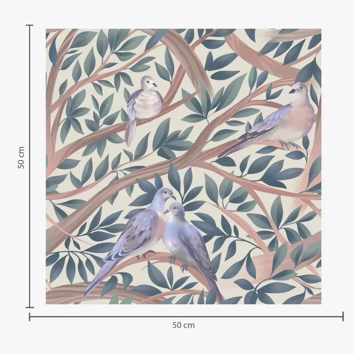 Tapeta Golobi med vejami in listi v nežni pastelnih barvah Št. a00796