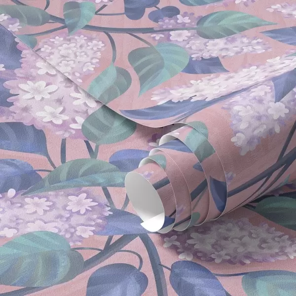 Tapeta Nežni lila cvetovi na rožnatem ozadju, pomladno razpoloženje Št. a00797