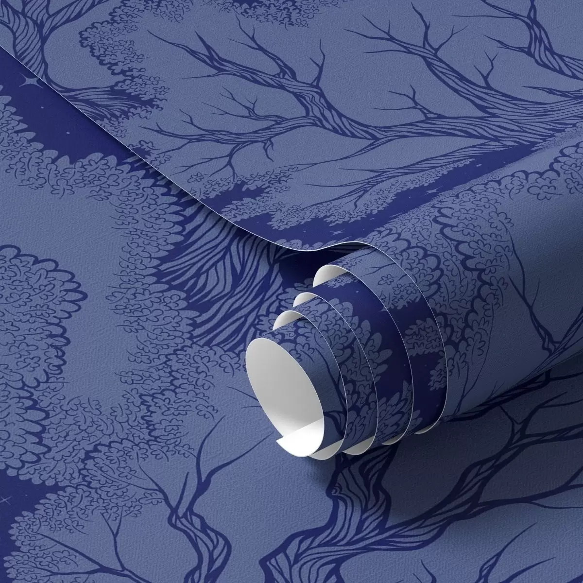 Tapeta Silhuete dreves pod zvezdnatim nebom v odtenkih modre barve Št. a00798