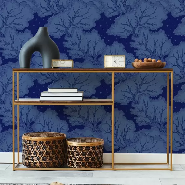 Tapeta Silhuete dreves pod zvezdnatim nebom v odtenkih modre barve Št. a00798