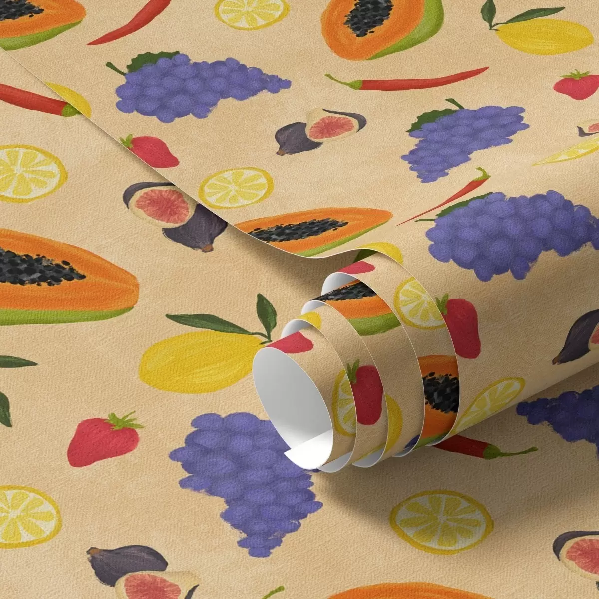 Tapeta Papaja, agrumi in jagodičje na bogatem toplem ozadju Št. a00803v1