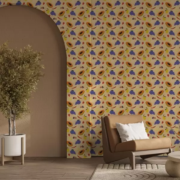 Tapeta Papaja, agrumi in jagodičje na bogatem toplem ozadju Št. a00803v1