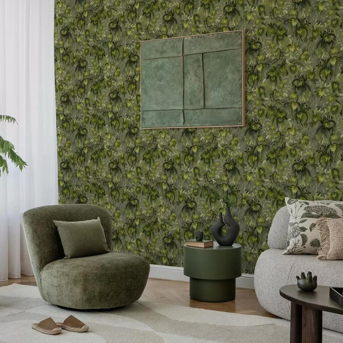 Tapeta Gosto zeleno listje na sivo-zelenem ozadju Št. a00805v1