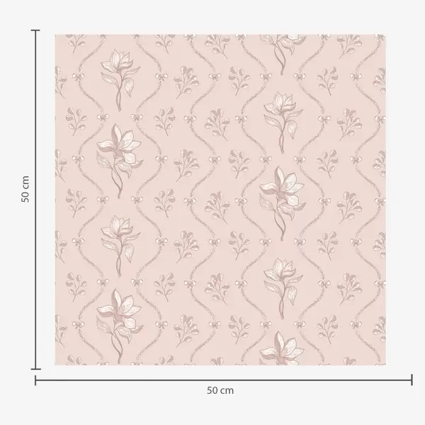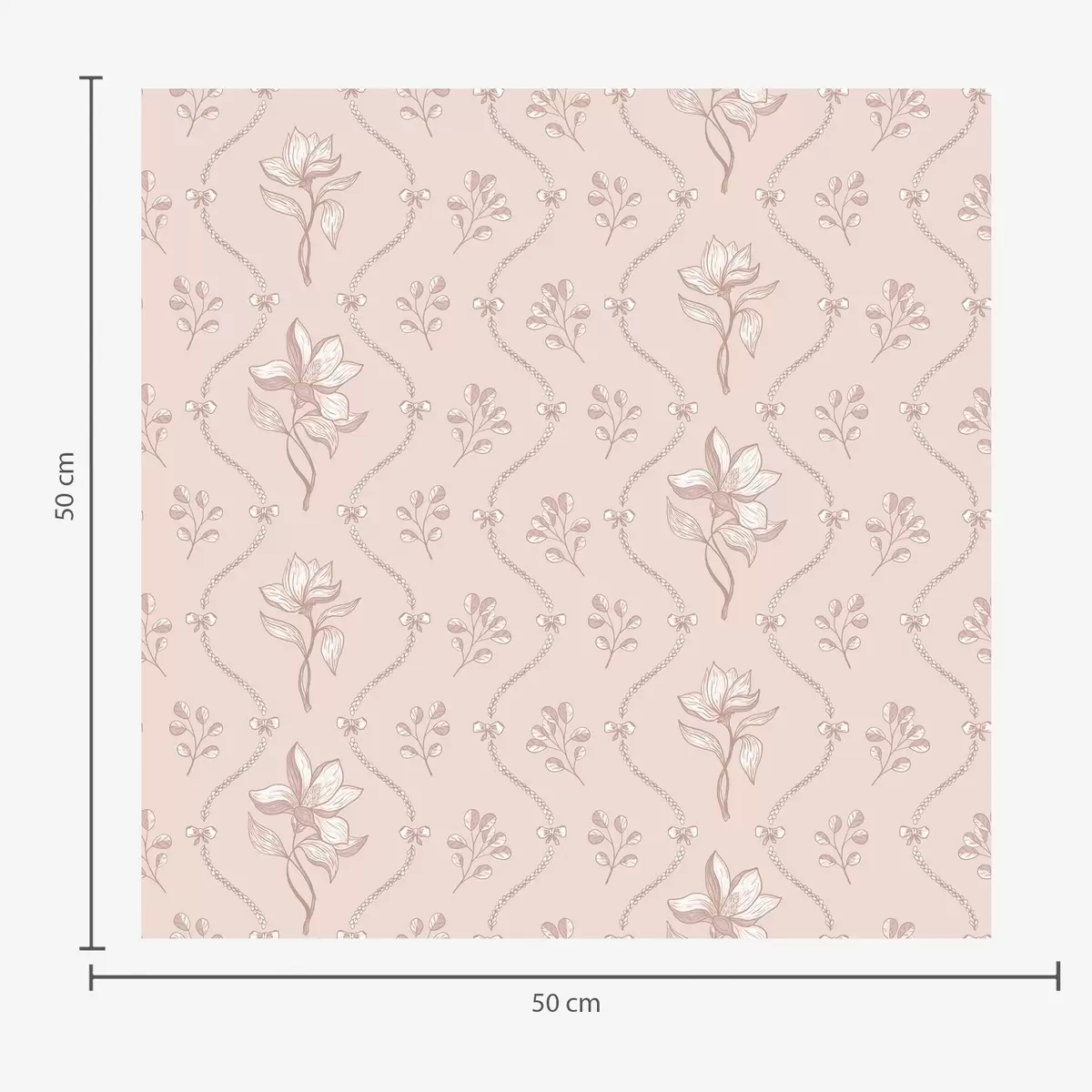 Tapeta Majhni cvetovi in trakovi v nežnih rožnatih in bež barvah Št. a00808