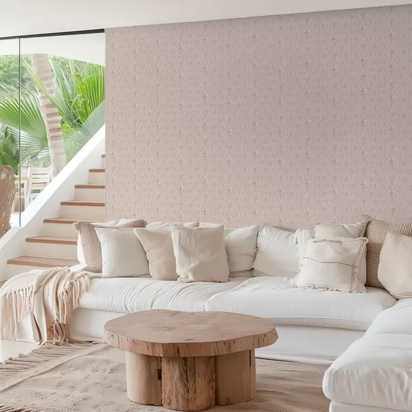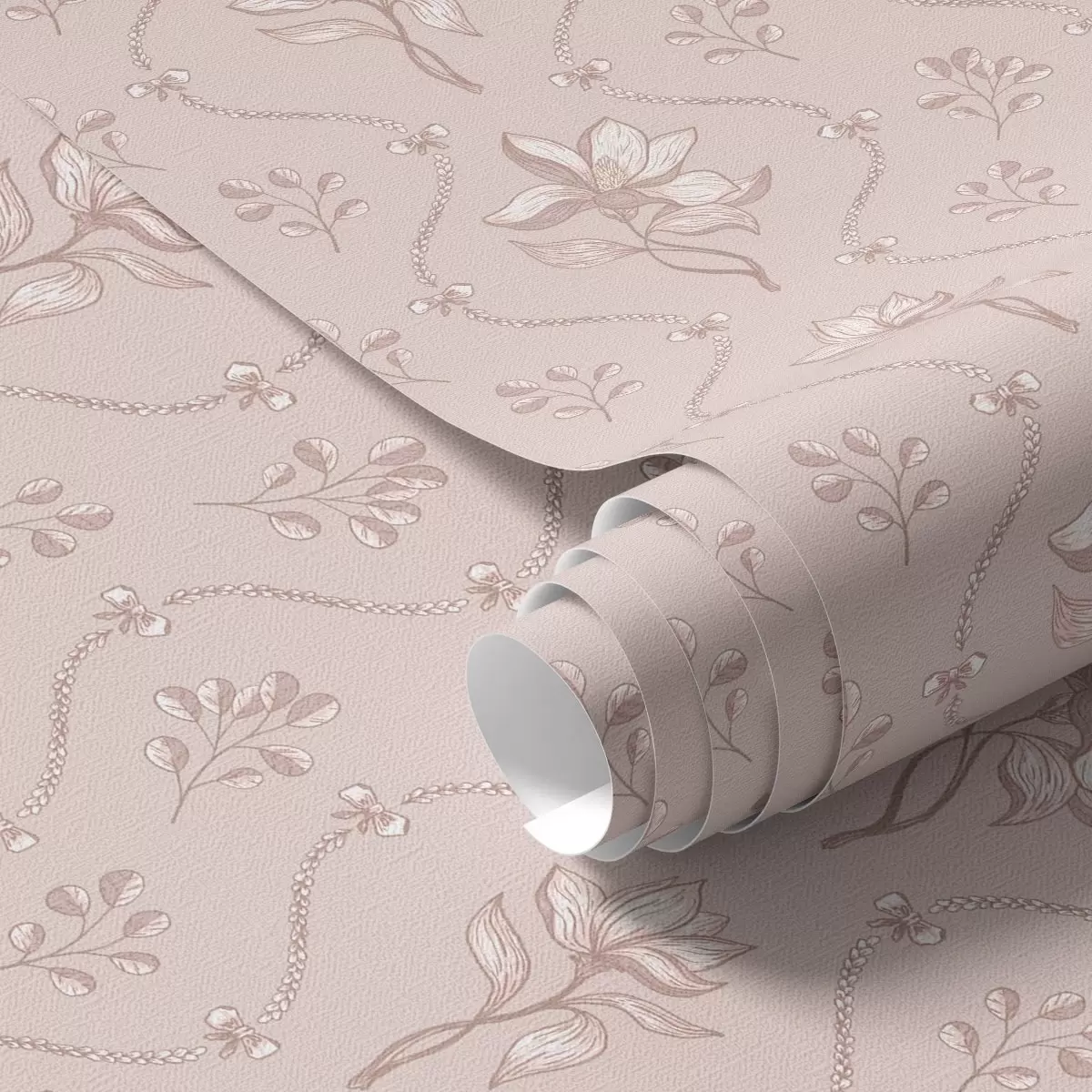 Tapeta Majhni cvetovi in trakovi v nežnih rožnatih in bež barvah Št. a00808