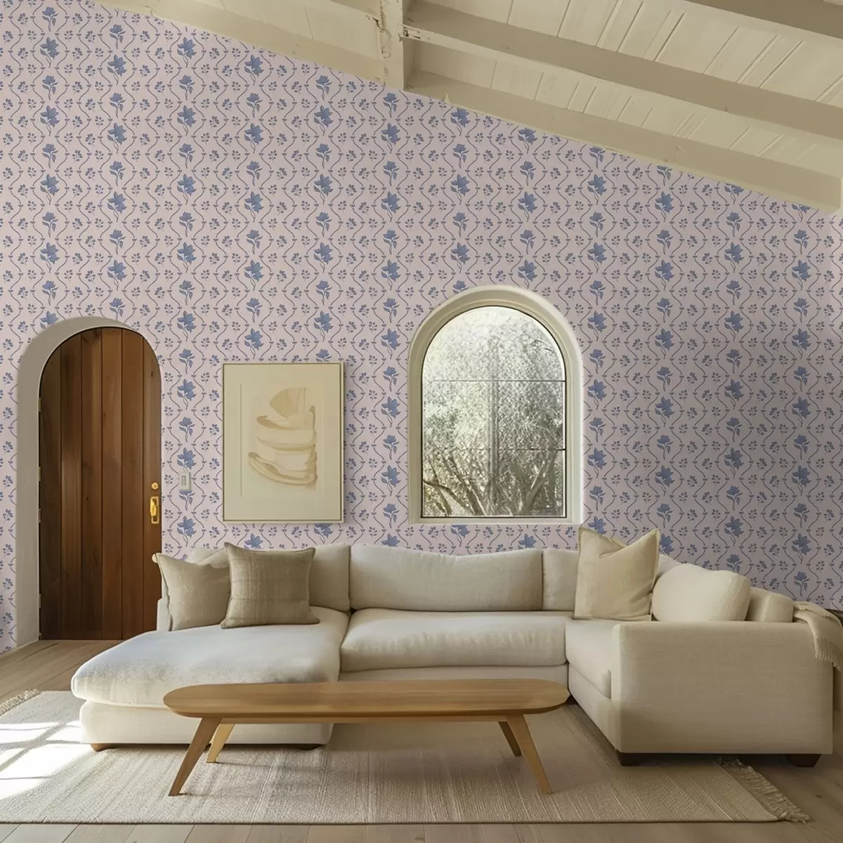Tapeta Majhni cvetovi in trakovi v modrih in rožnatih odtenkih Št. a00808v3