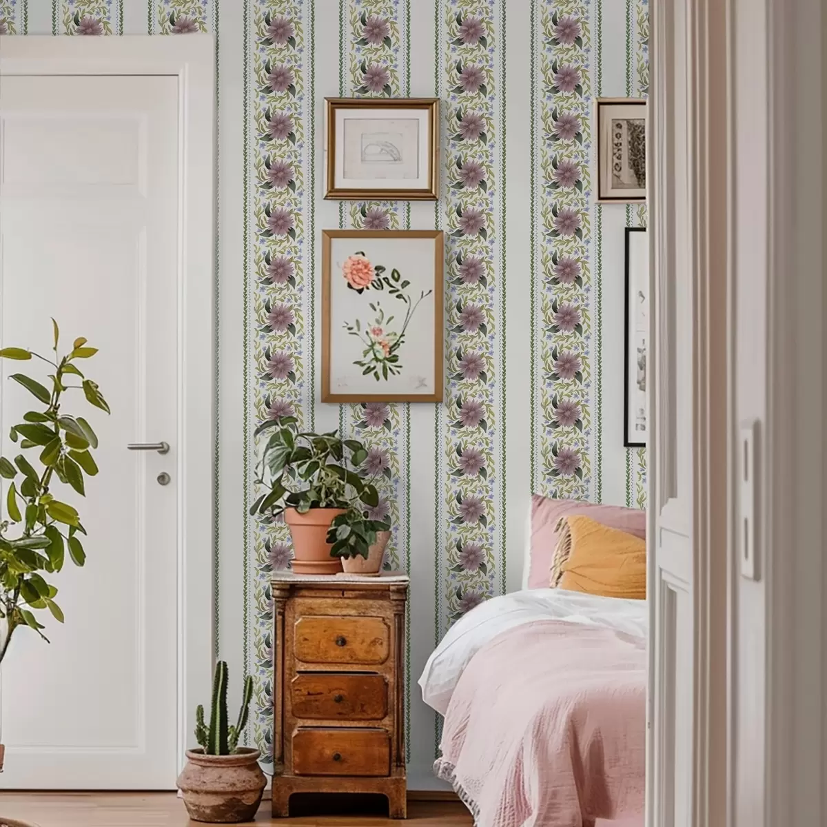 Tapeta Vertikalne cvetlične črte v lila-modrih odtenkih Št. a00809