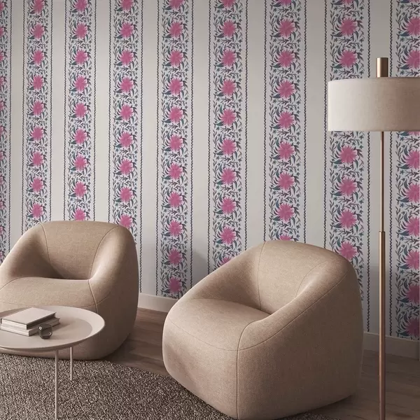 Tapeta Vertikalne cvetlične črte v rožnato-vijoličnih odtenkih Št. a00810