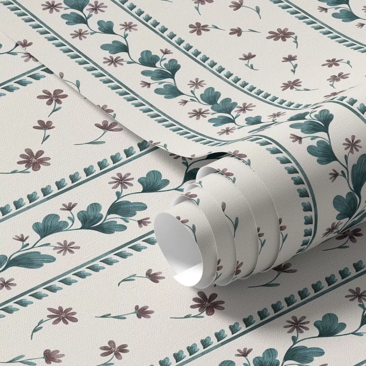 Tapeta Vertikalne cvetlične črte v modro-rjavih odtenkih Št. a00811