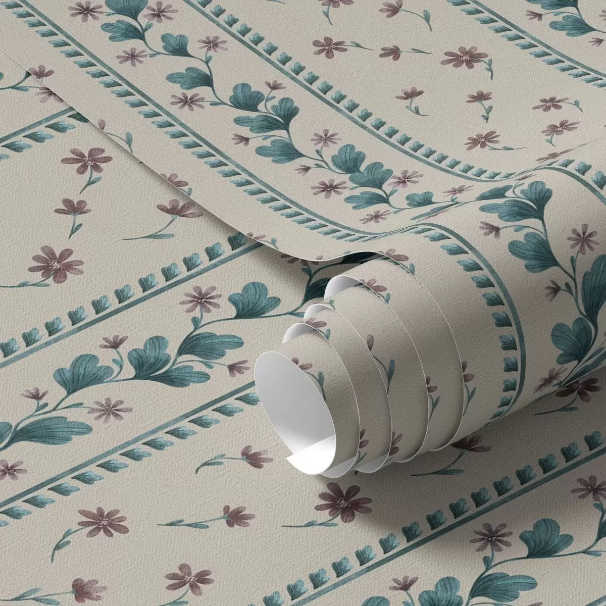 Tapeta Vertikalne cvetlične črte v modro-rjavih odtenkih Št. a00811v1