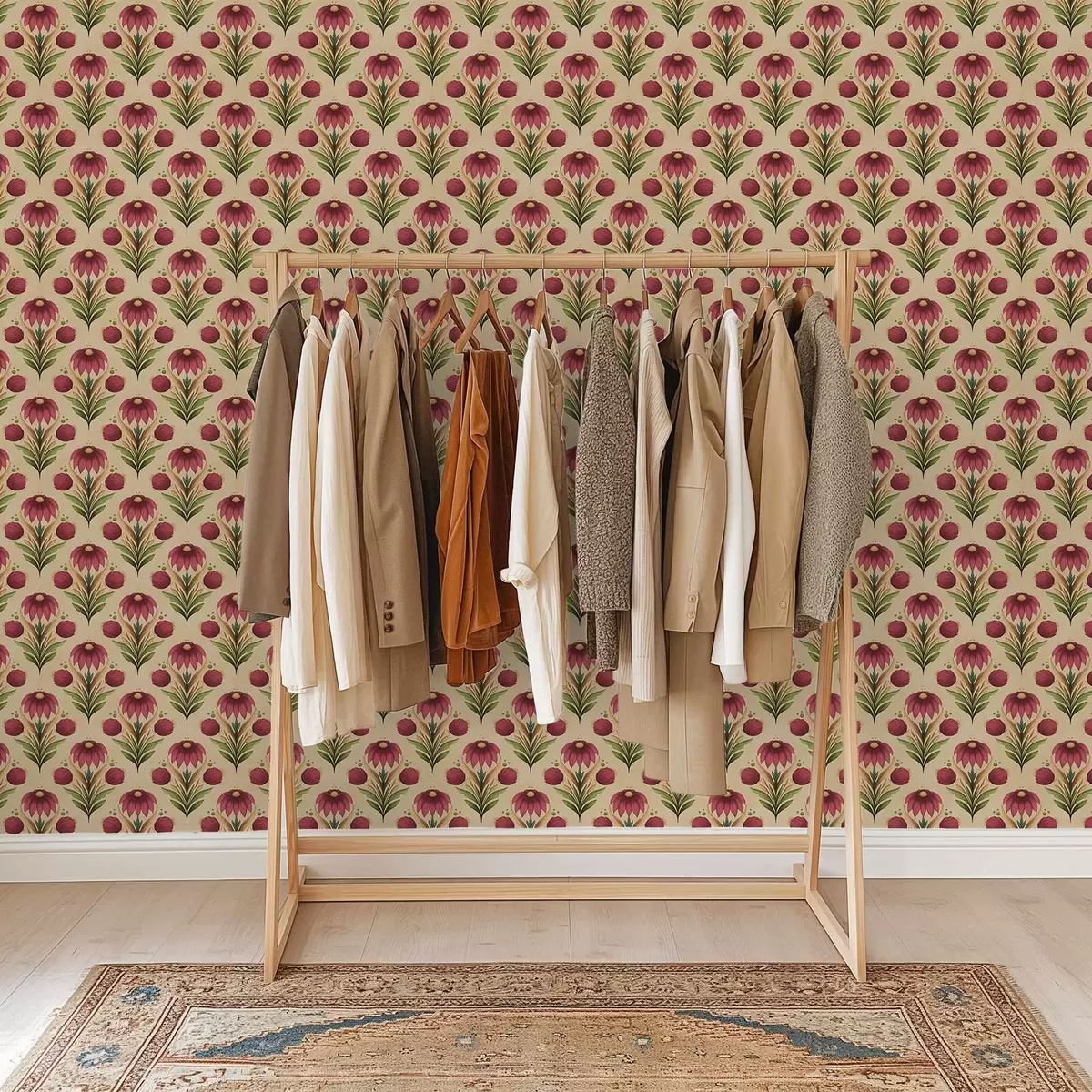 Tapeta Simetrični cvetlični ornament na topli bež barvi ozadja Št. a00812v6
