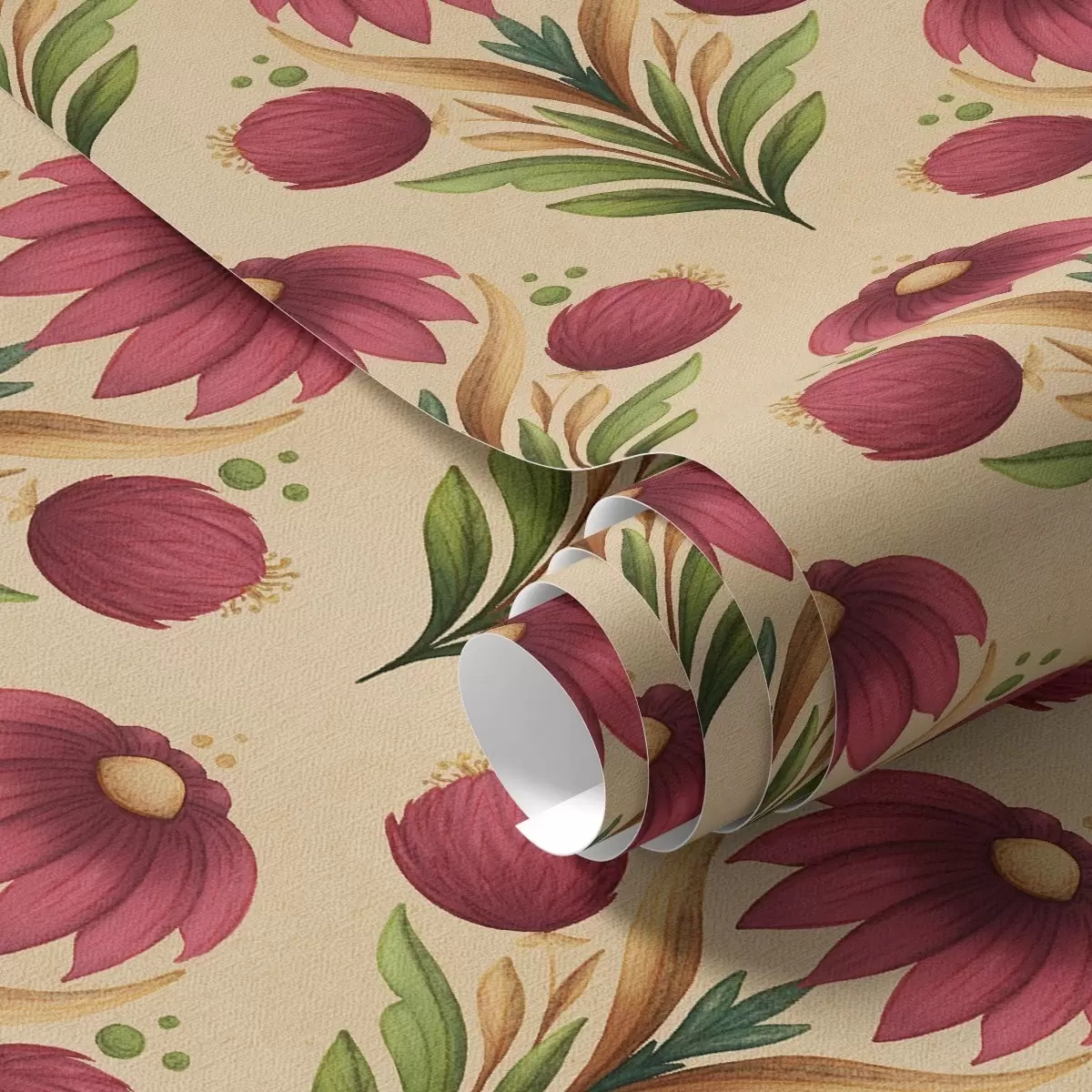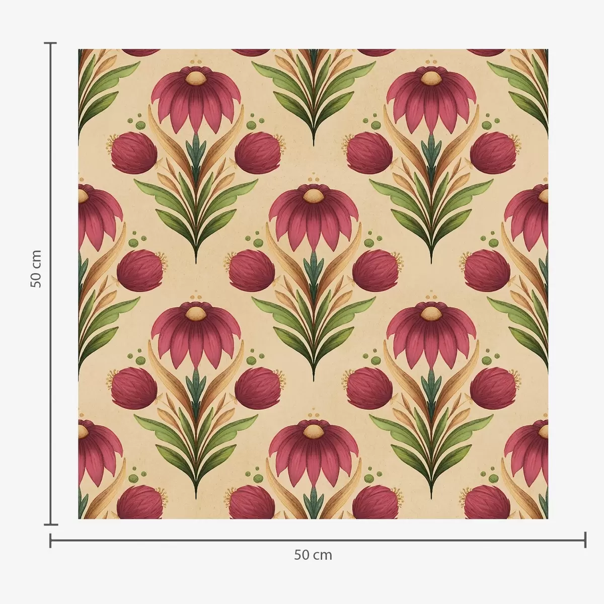 Tapeta Simetrični cvetlični ornament na topli bež barvi ozadja Št. a00812v6