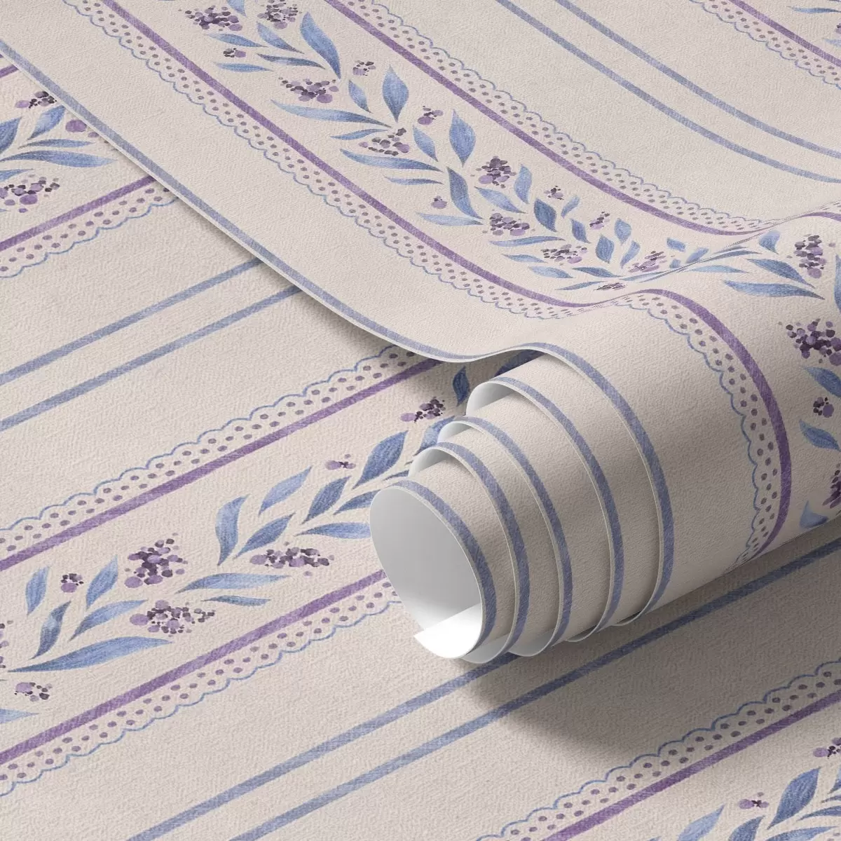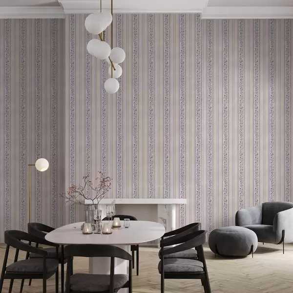 Tapeta Vertikalne črte z lavandino vinjeto, topla bež barva Št. a00813