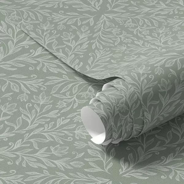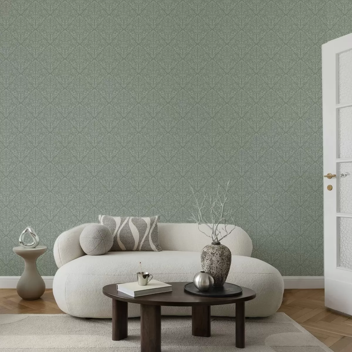 Tapeta Botanika damast na mint-olive ozadju Št. a00815