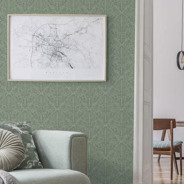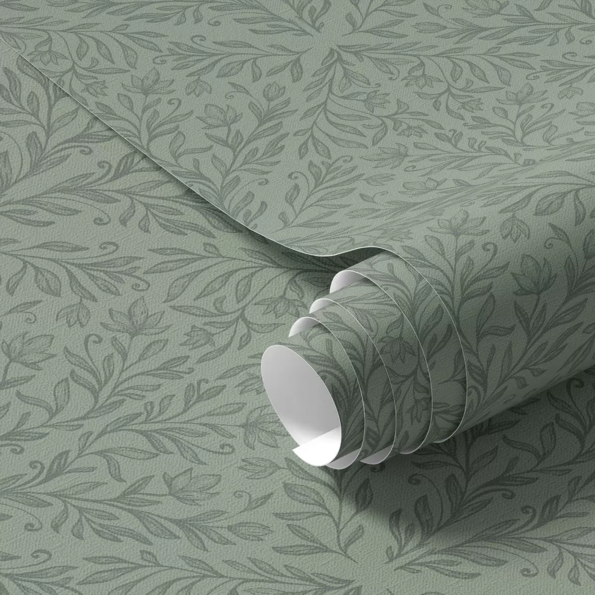 Tapeta Fina botanična damaska v umirjeni zeleni barvi Št. a00815v1