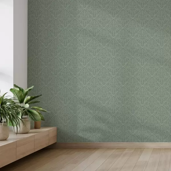 Tapeta Fina botanična damaska v umirjeni zeleni barvi Št. a00815v1