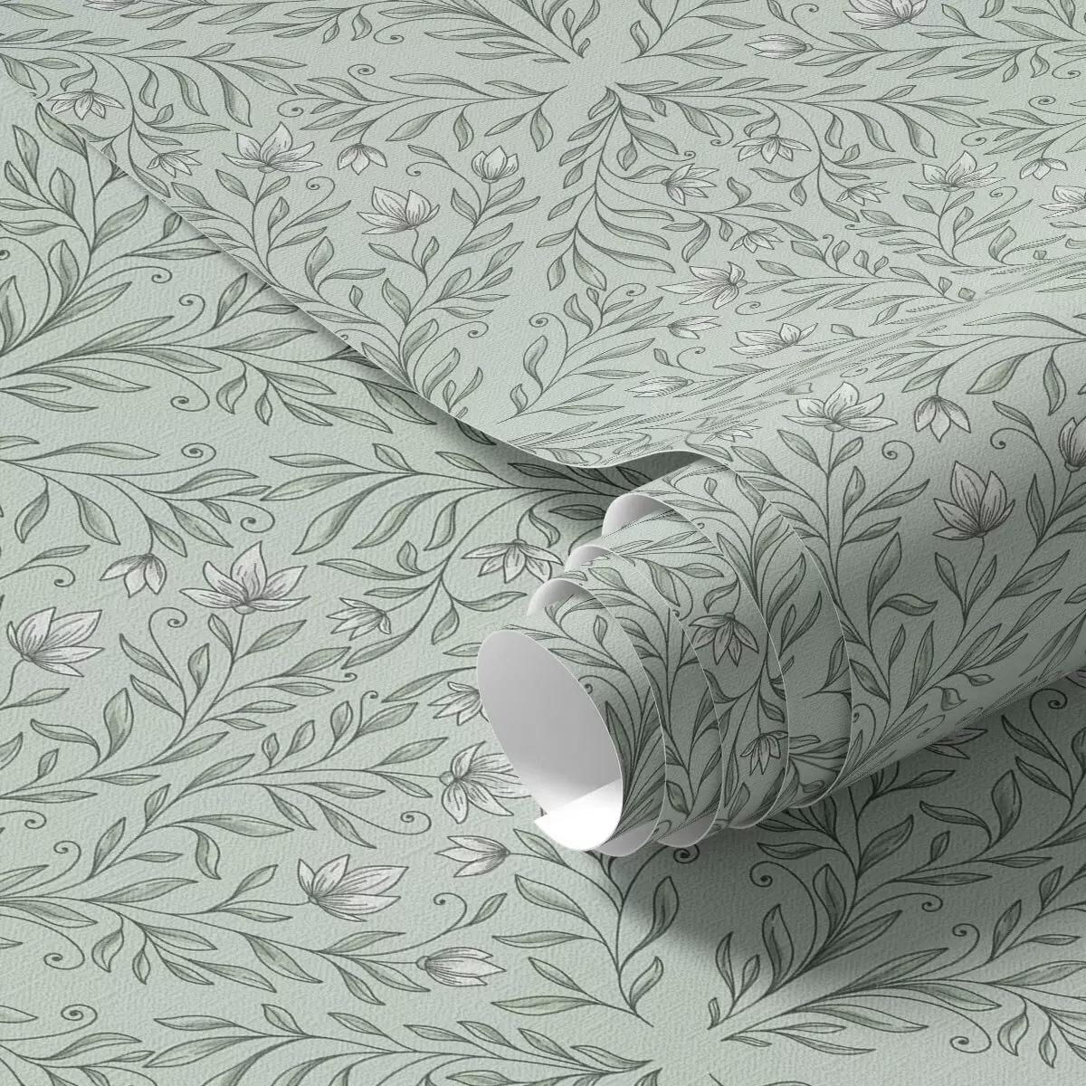 Tapeta Lacy snema na pastelno zeleni, nežni globini Št. a00815v3
