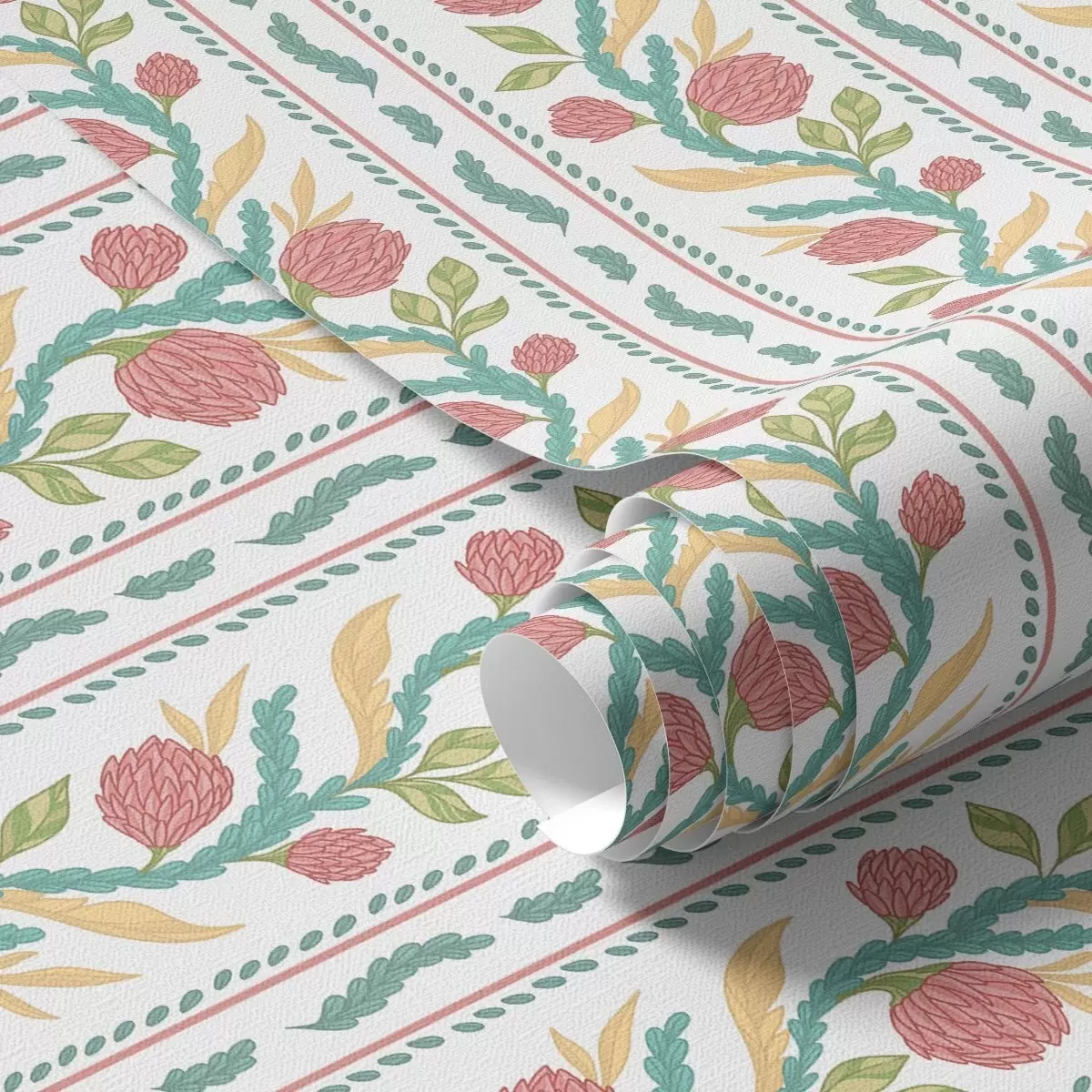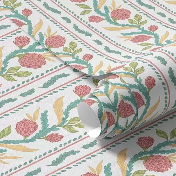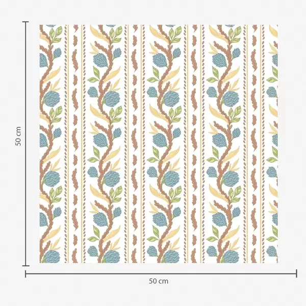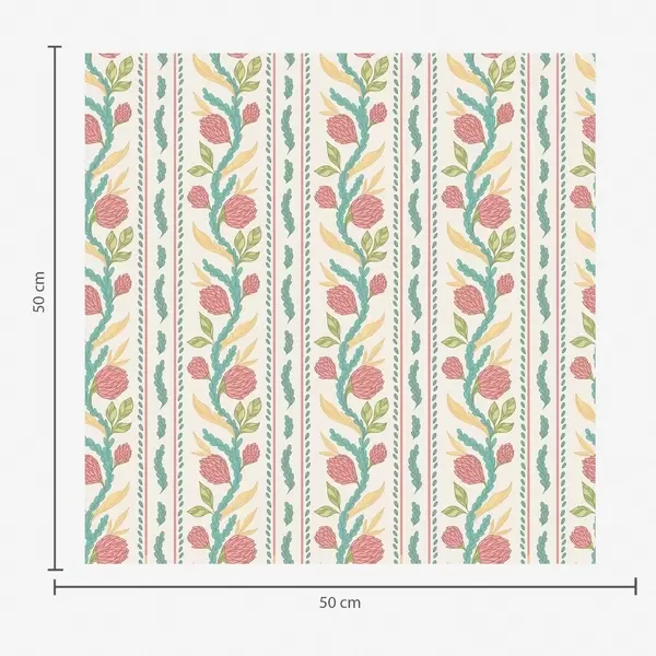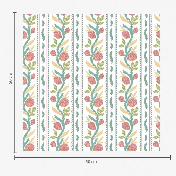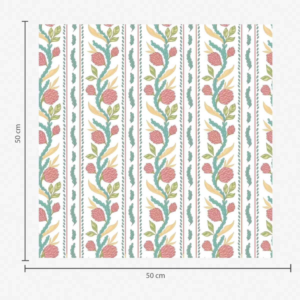 Tapeta Vertikalne črte s koralnimi cvetovi in turkiznimi listi Št. a00816