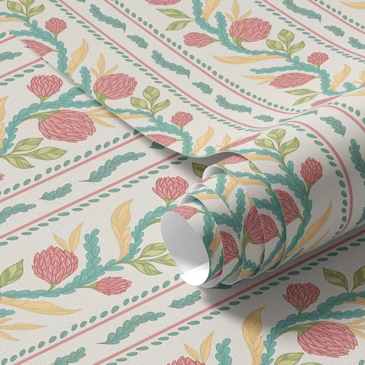 Tapeta Črte s koralnimi popki na svetlo kremastem ozadju Št. a00816v1