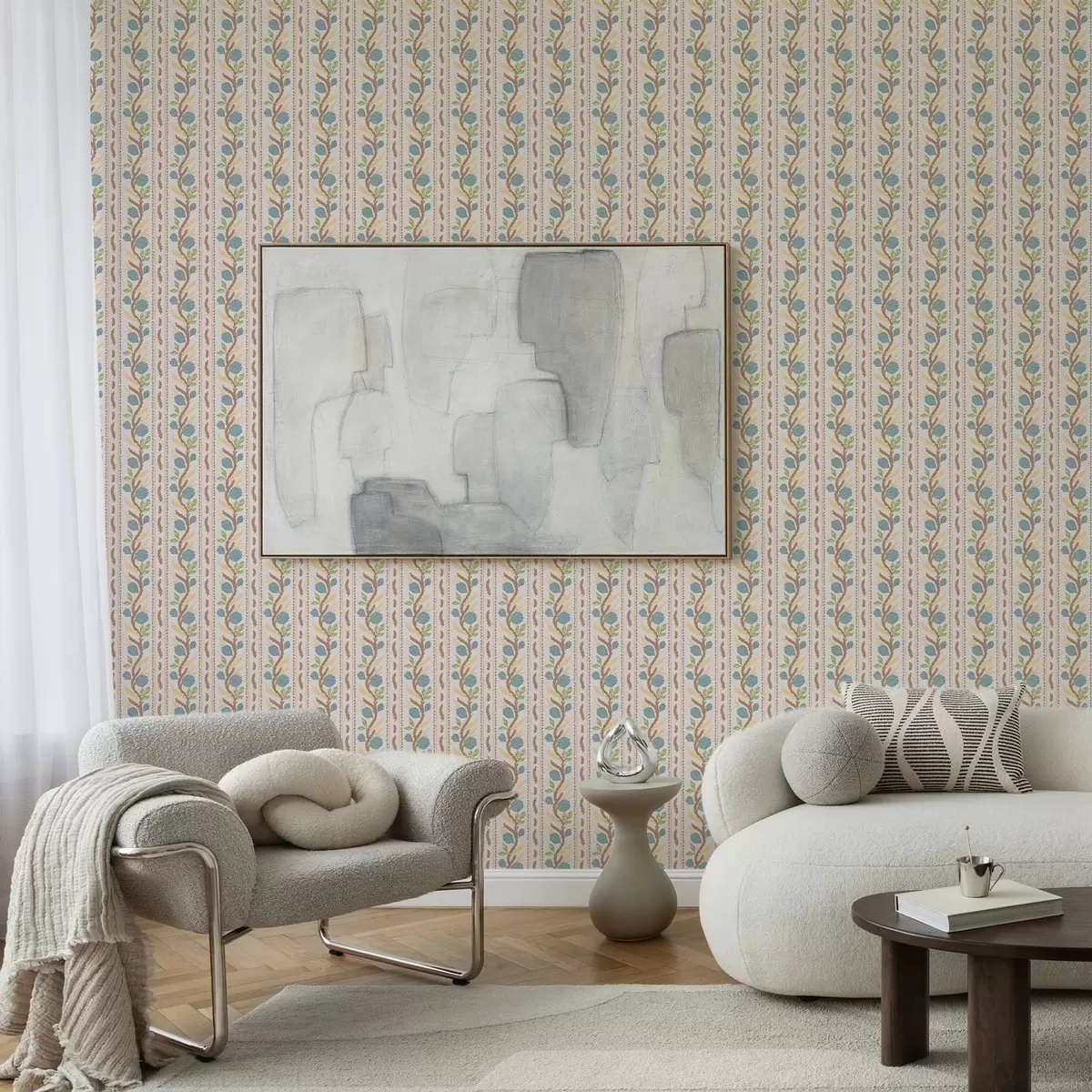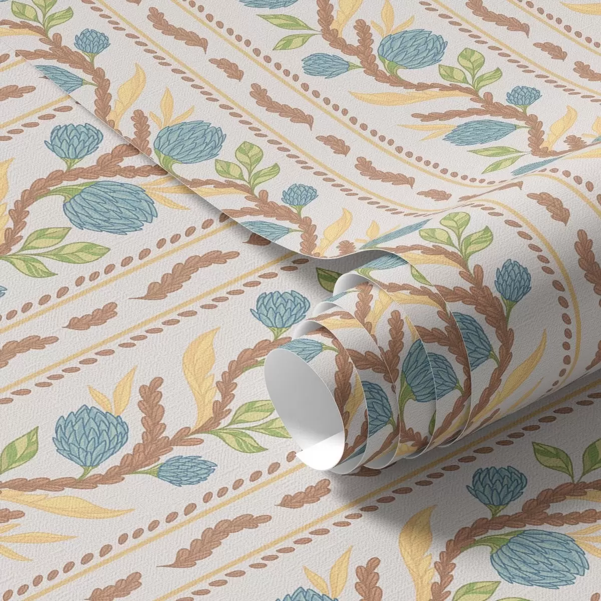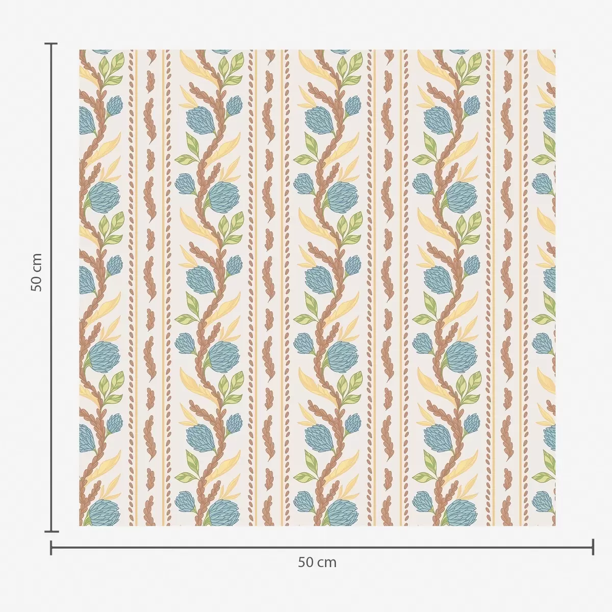 Tapeta Vertikalne črtaste cvetice z modrimi cvetovi na topli podlagi Št. a00816v3