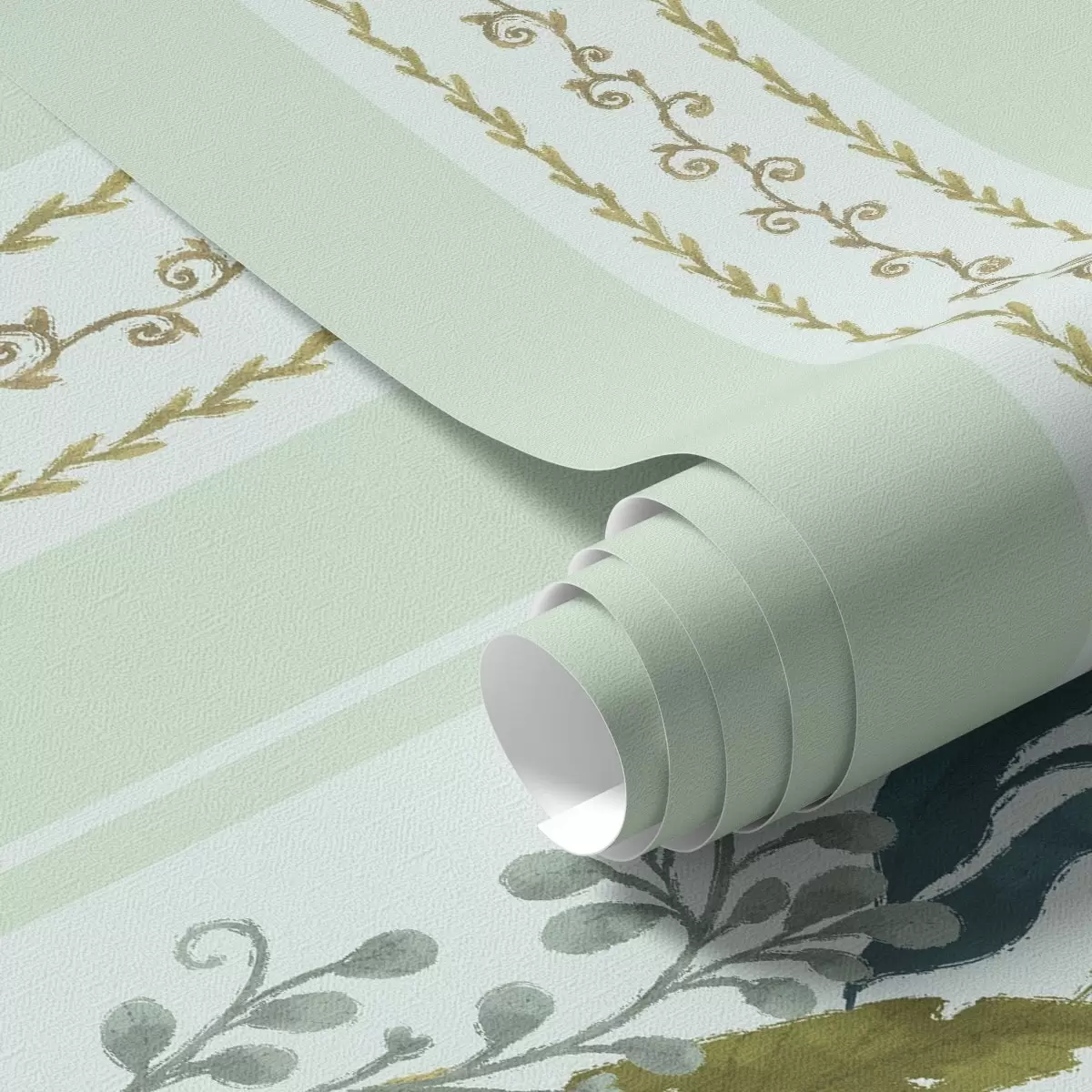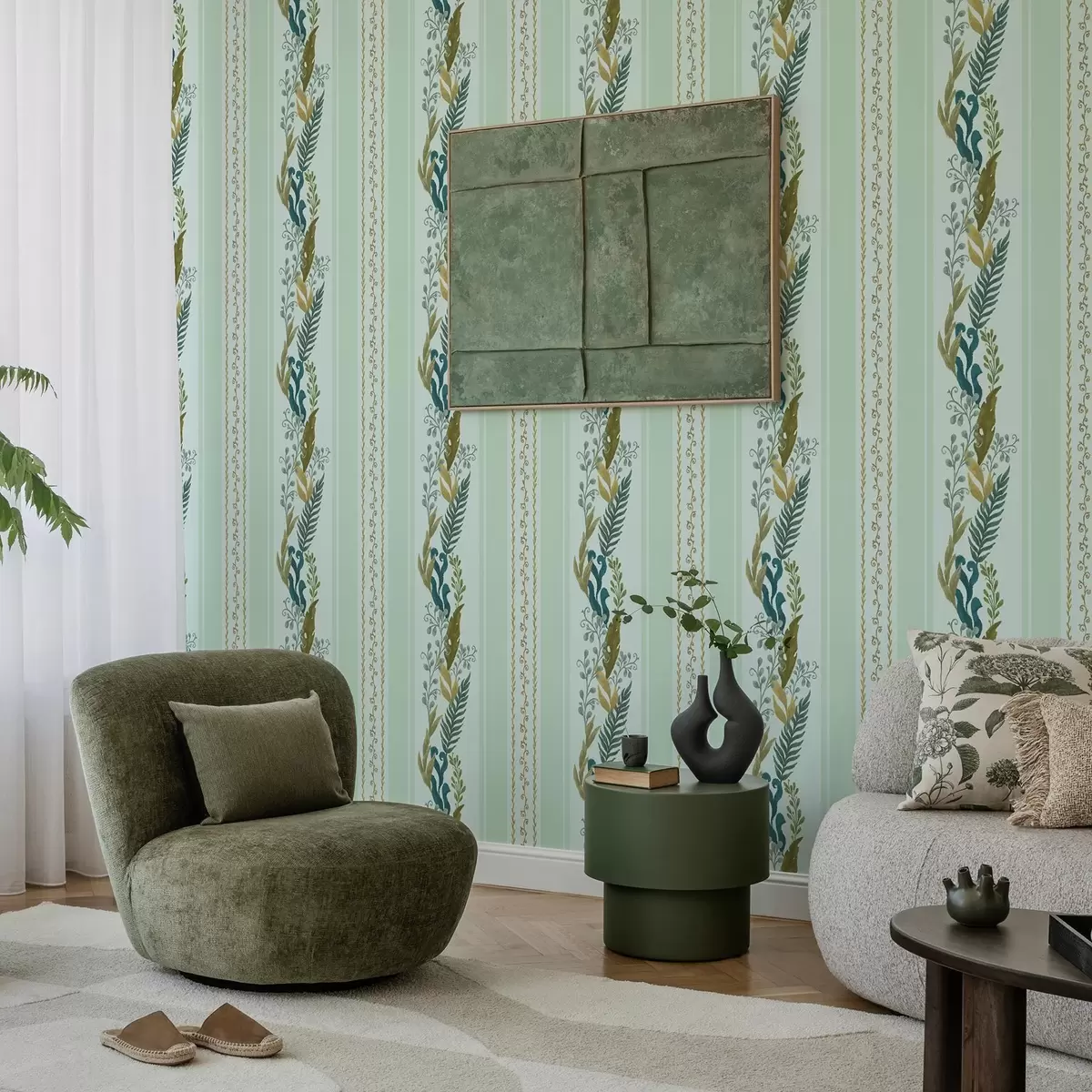 Tapeta Široke črte s slikarskimi vejami na nežni meti Št. a00825v1