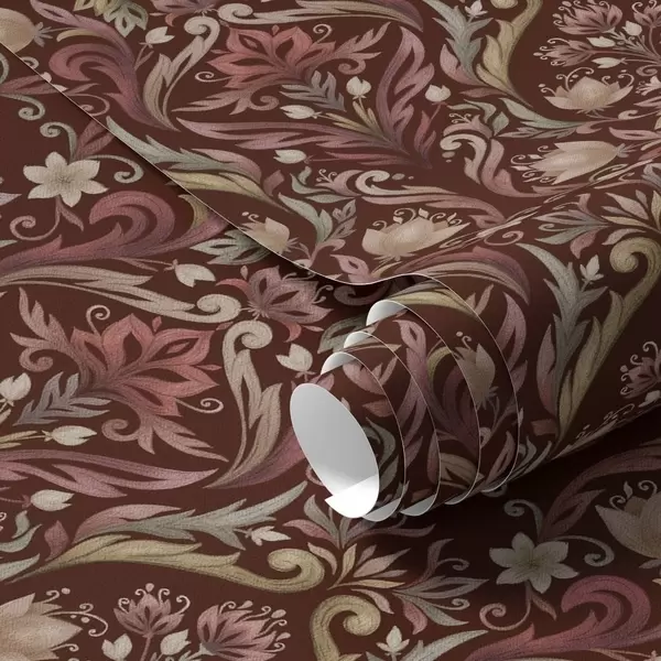 Tapeta Tulipanov ornament, bogato burgundsko ozadje Št. a00827v2