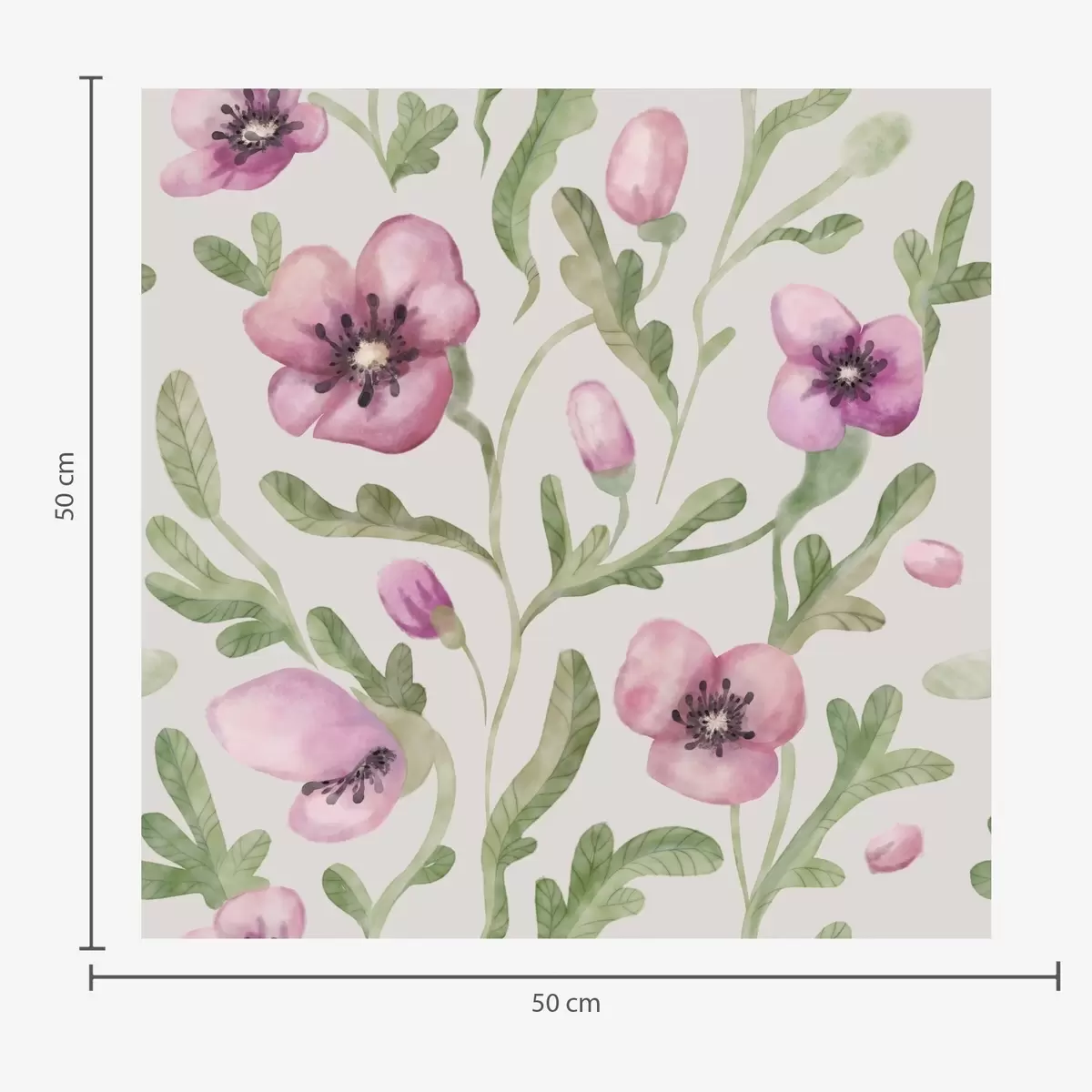 Tapeta Nežni rožnati makovi cvetovi z listi, naslikani v akvarelni tehniki Št. a00830