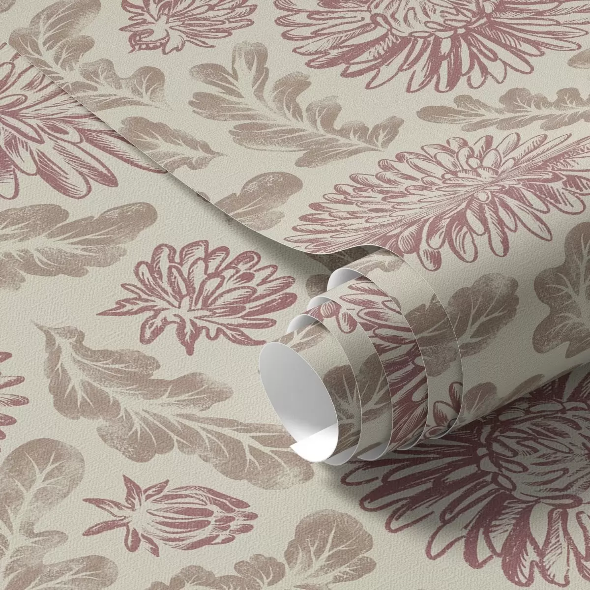 Tapeta Krizanteme z vinskimi poudarki na smetanasti podlagi Št. a00840v1