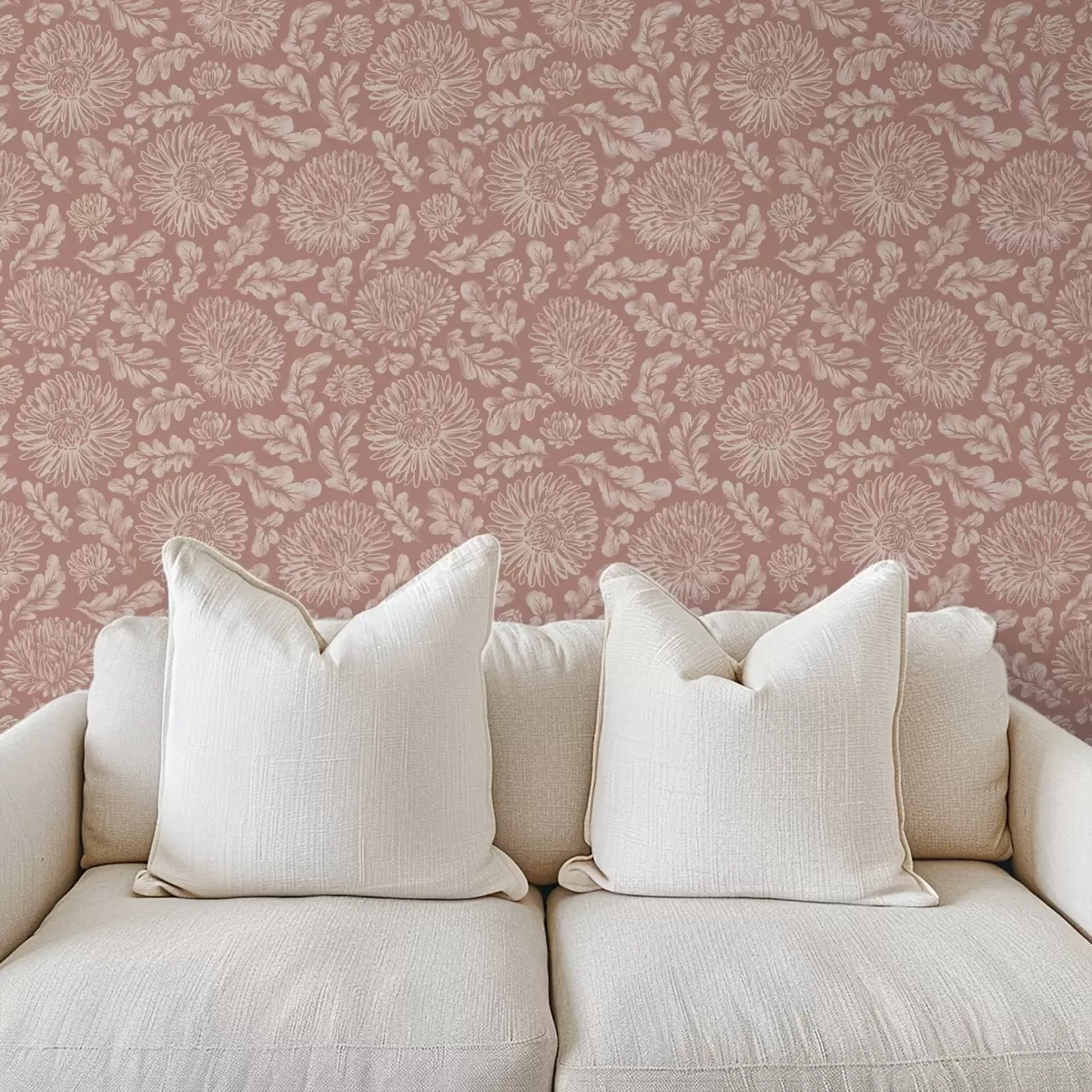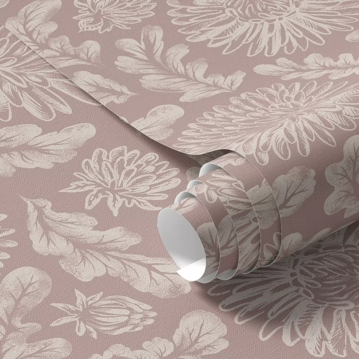 Tapeta Kremaste krizanteme na prašno rožnati podlagi Št. a00840v2