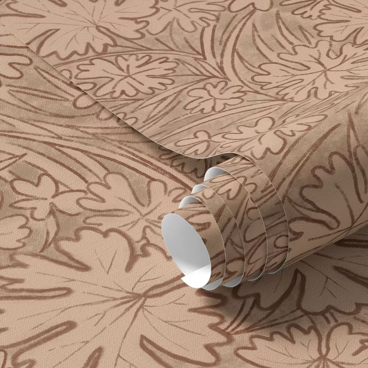 Tapeta Poljska listja in trave v terakotno-bežni barvni paleti Št. a00847