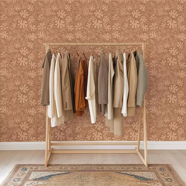 Tapeta Poljska listja in trave v terakotno-bežni barvni paleti Št. a00847