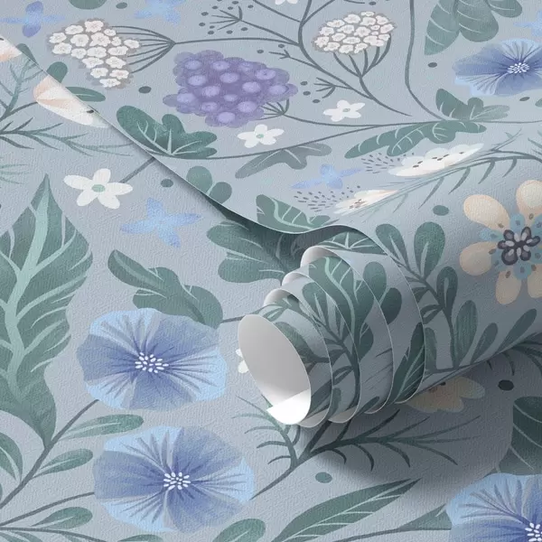 Tapeta Divje rože in jagode na sivo-modrem ozadju Št. a00849v1
