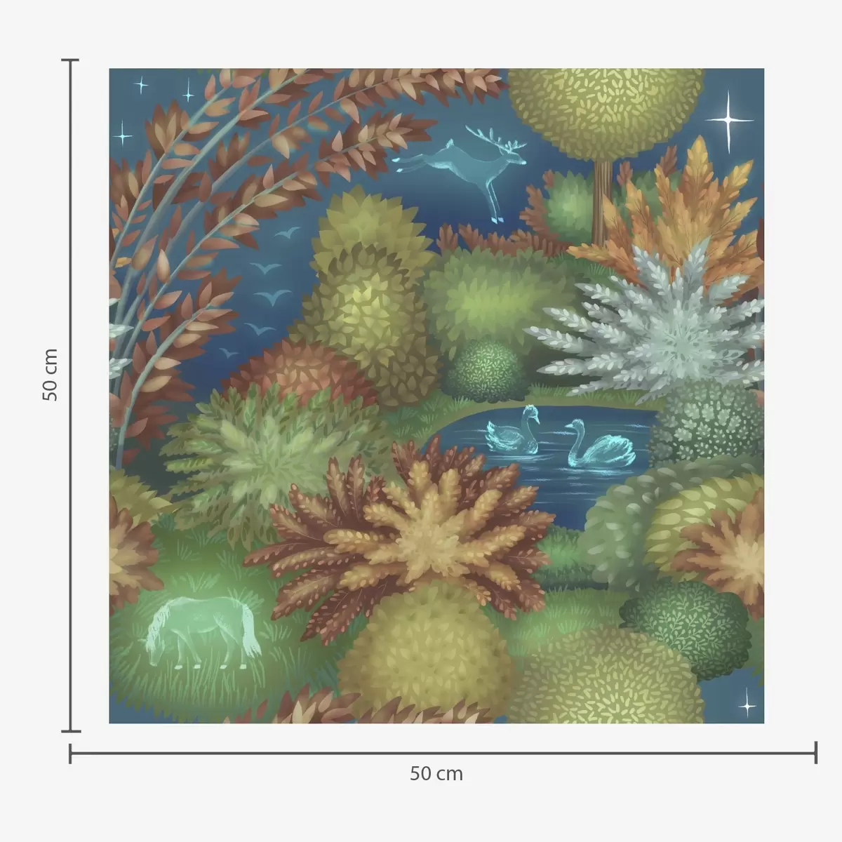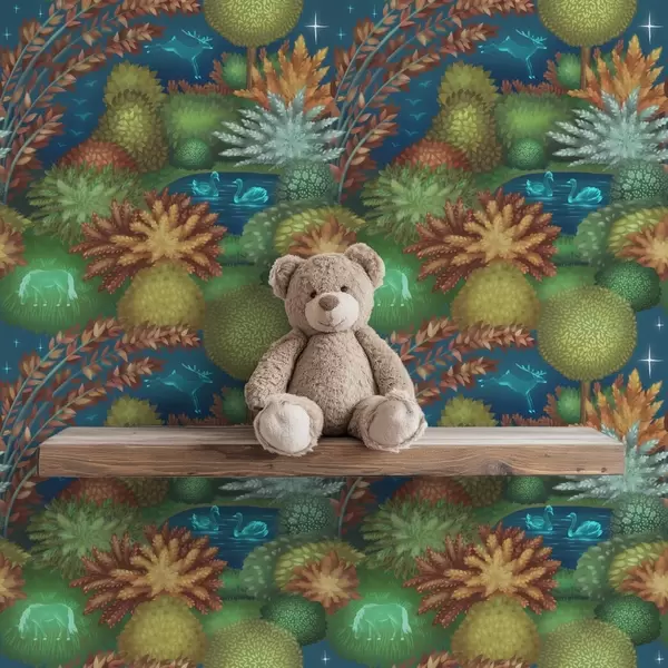 Tapeta Pravljični nočni vrt z jezerom in svetlečimi živalmi Št. a00851