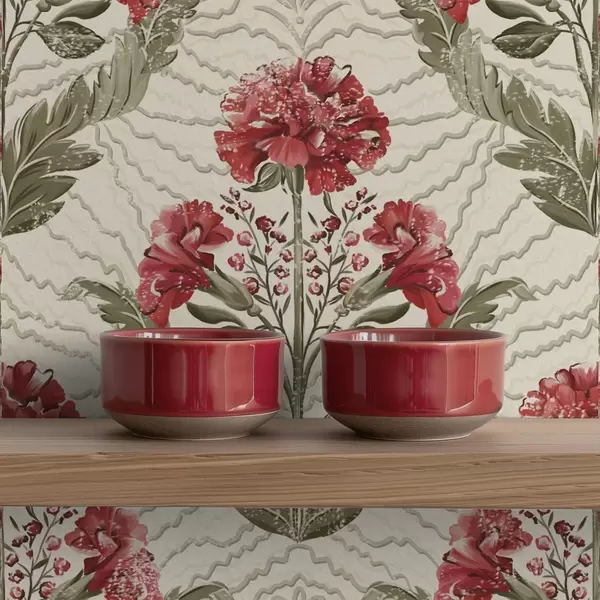 Tapeta Velike rdeče potonike z grafičnim ozadjem, kremasta podlaga Št. a00857