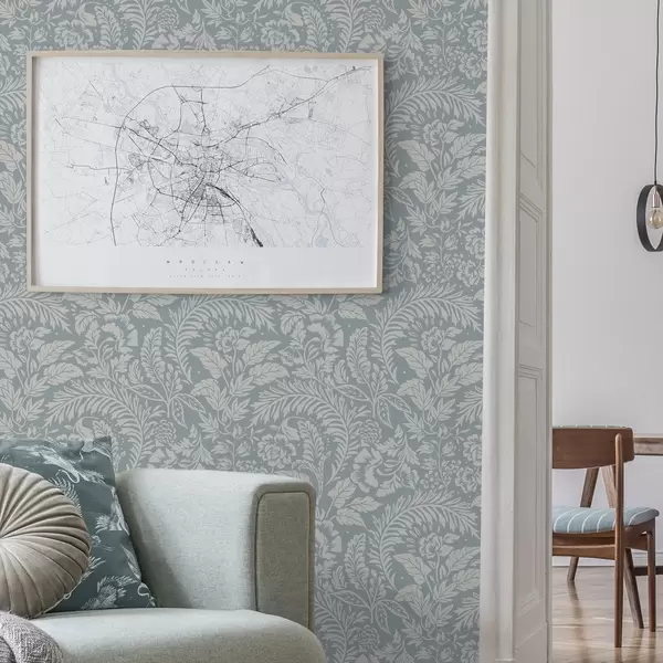 Tapeta Enobarvni cvetlični vzorec na sivo-modrem ozadju Št. a00859