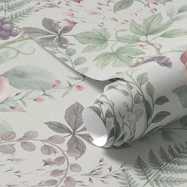 Tapeta Pastelni vrt z vrtnicami, praproti in grozdjem Št. a00867