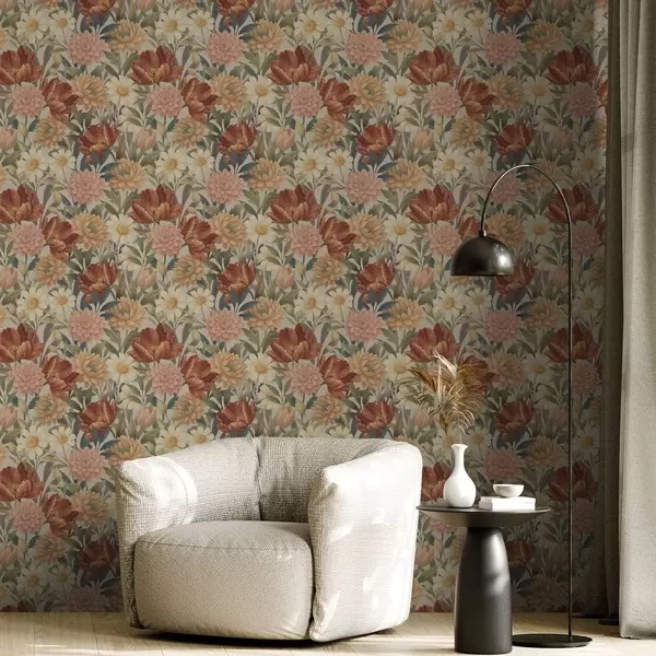 Tapeta Vintage vrt cveti v toplih odtenkih terakote in breskve Št. a00874