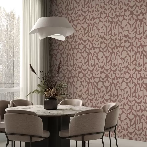 Tapeta Geometrične cvetlične silhuete v terakoti in krem barvi Št. a00875v2