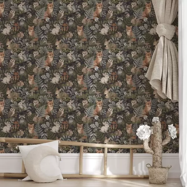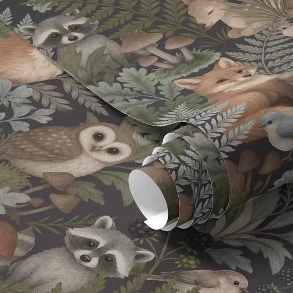Tapeta Gozdne živali in praproti na temnem oglju Št. a00880