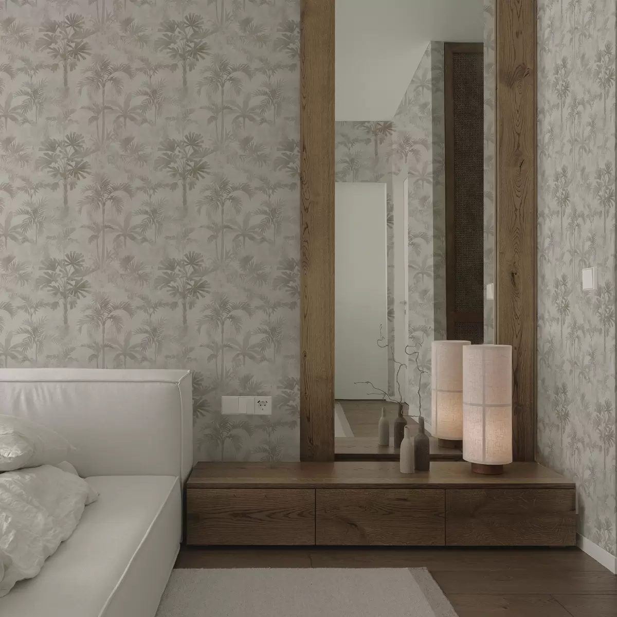 Tapeta Megleni nasad palm v toplih bež tonih Št. a00881