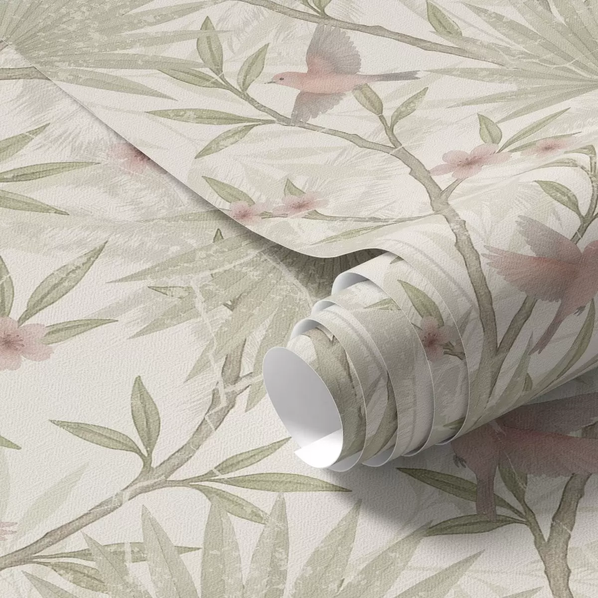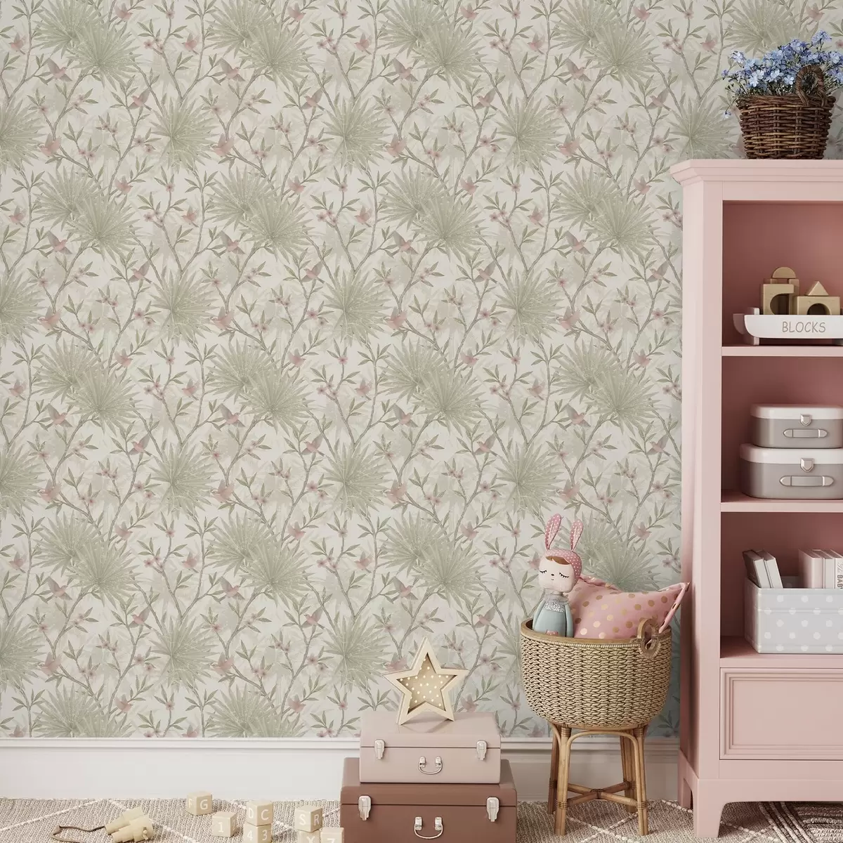 Tapeta Nežne rožnate ptice med palmovimi listi Št. a00883