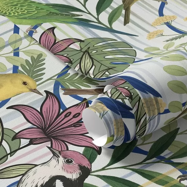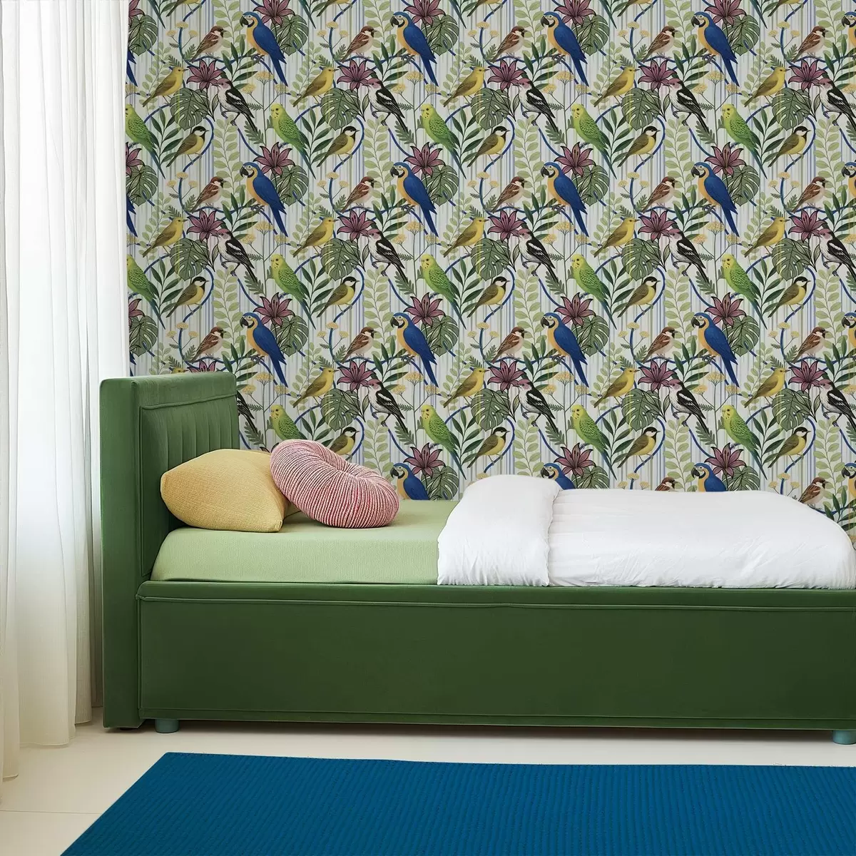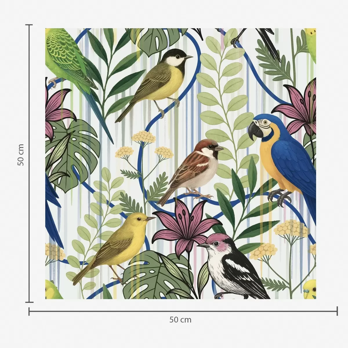 Tapeta Svetle eksotične ptice med tropskim zelenjem Št. a00887