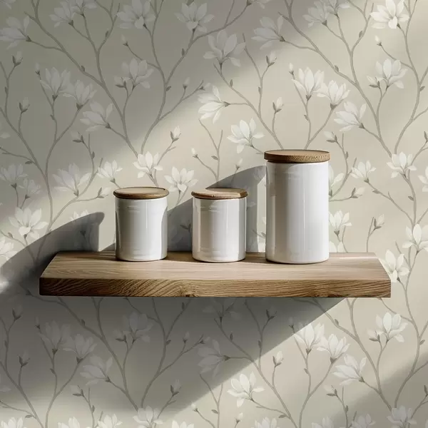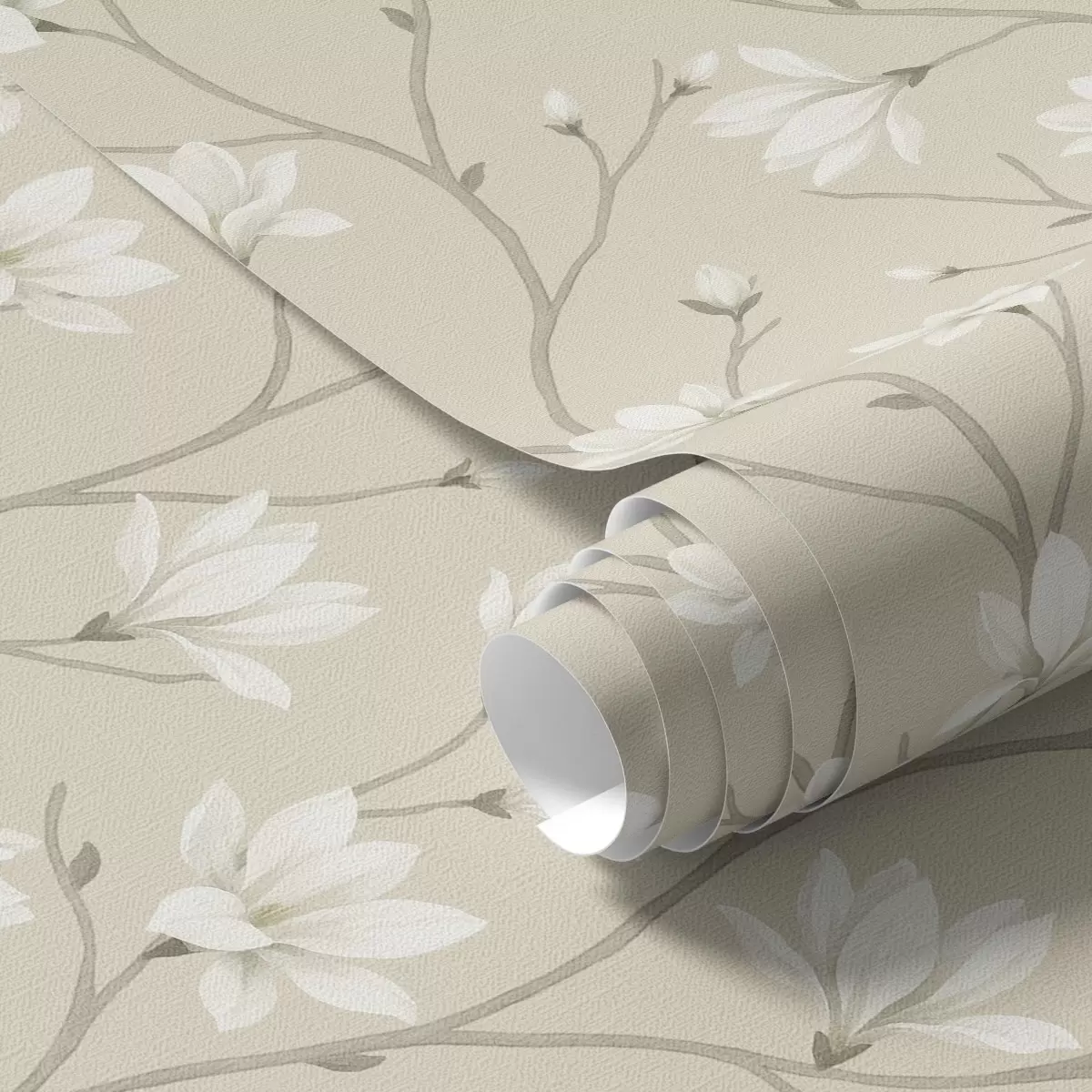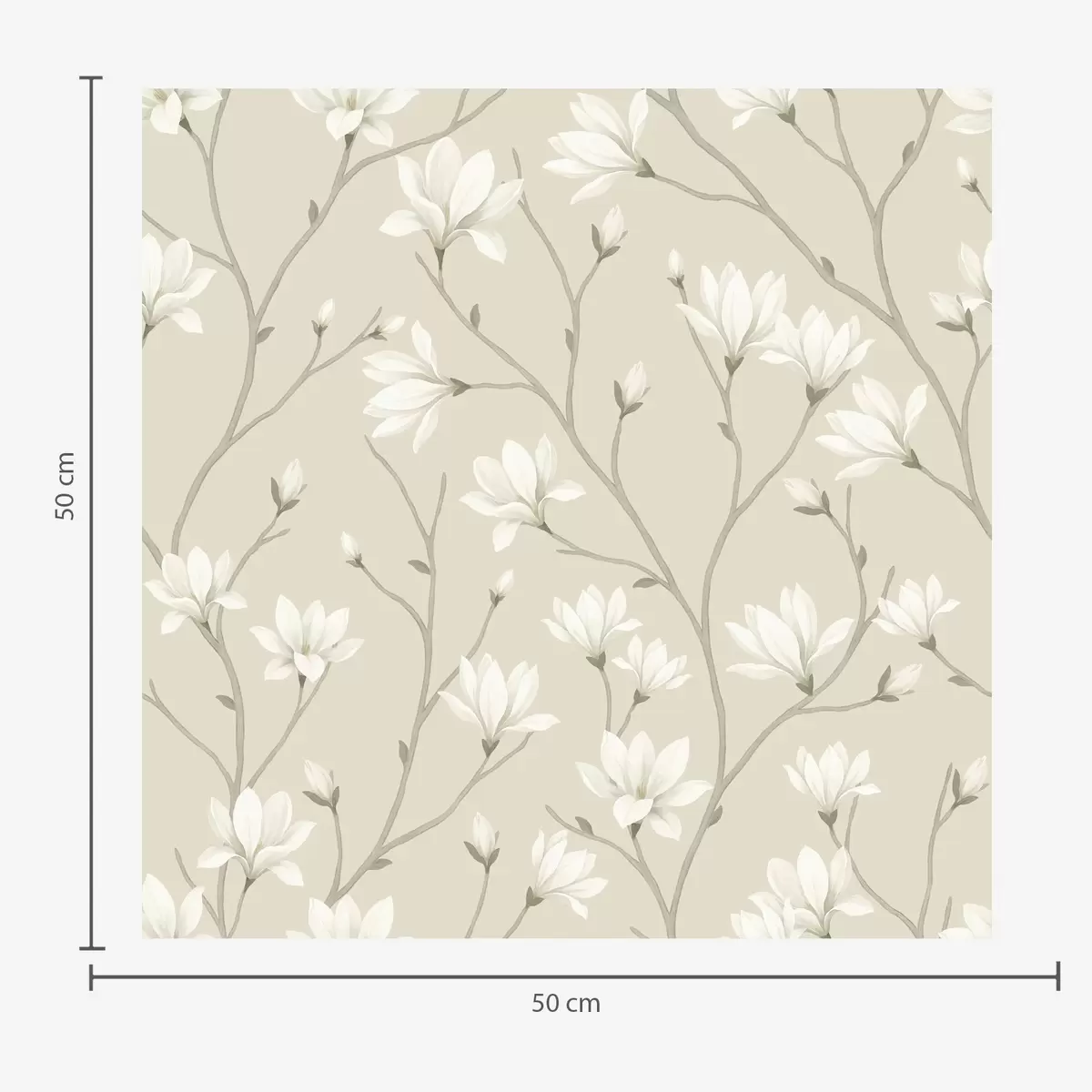 Tapeta Svetle magnolije na vitkih bež barvnih vejah Št. a00890