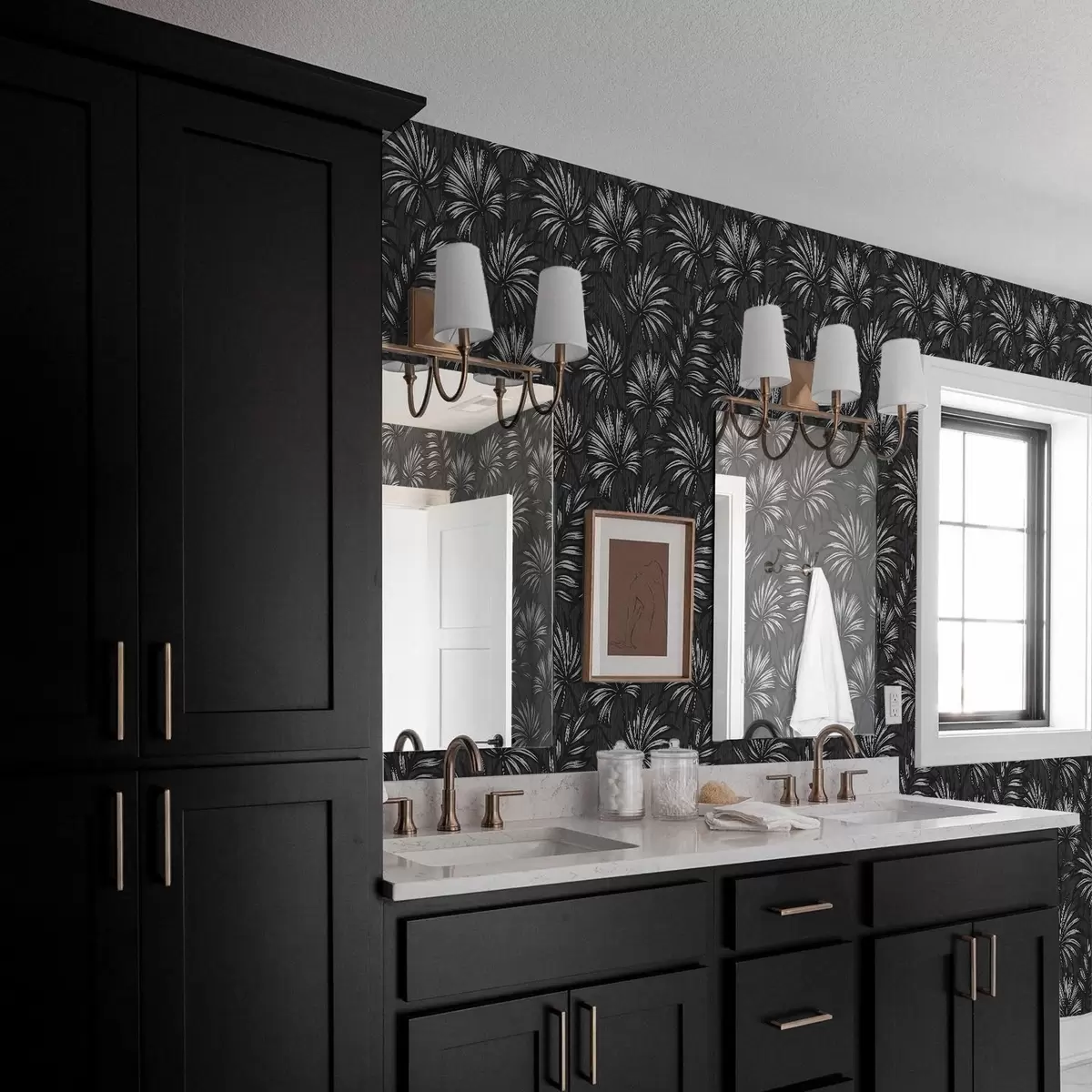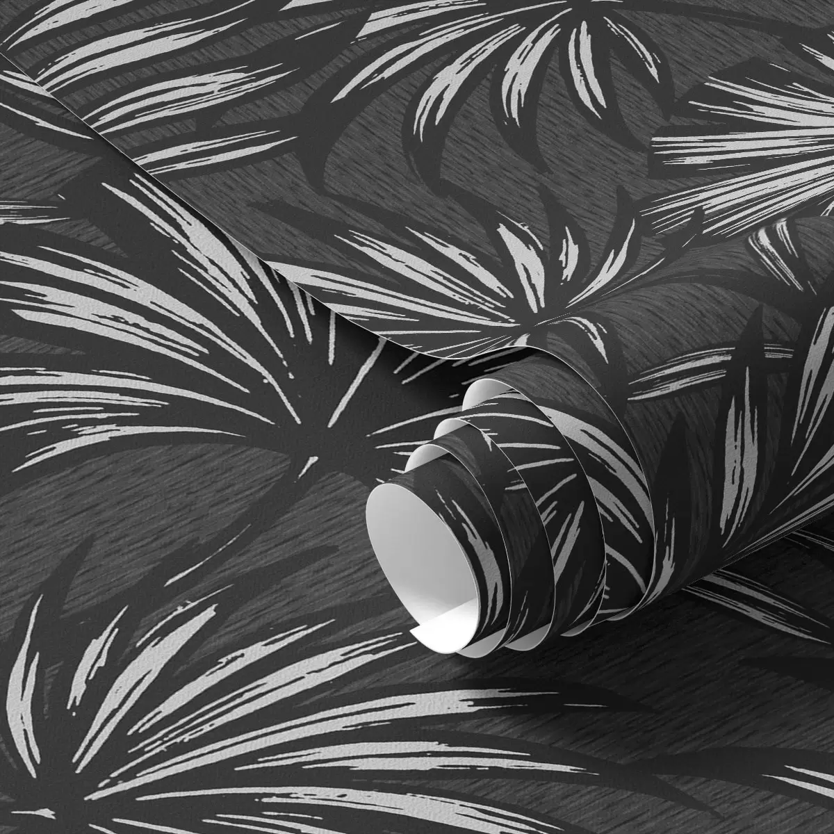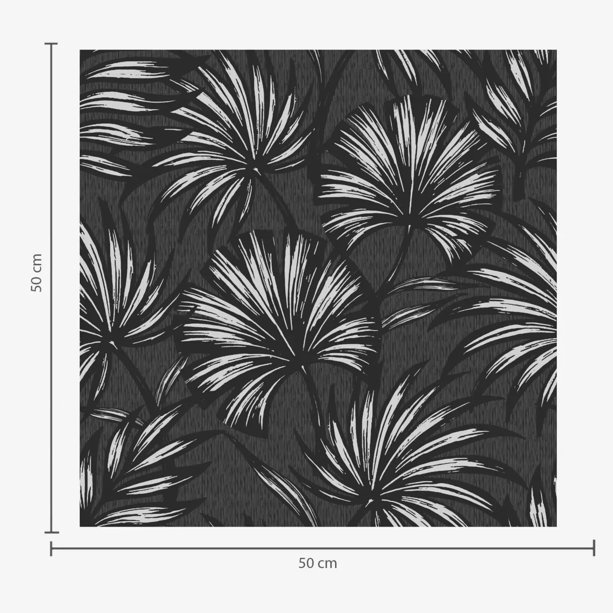 Tapeta Črno-bele palmovih listov na temnem ozadju Št. a00891