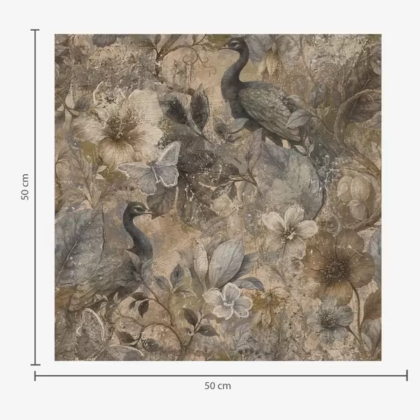 Tapeta Starinski cvetlični kolaž s pavji in metulji Št. a00897