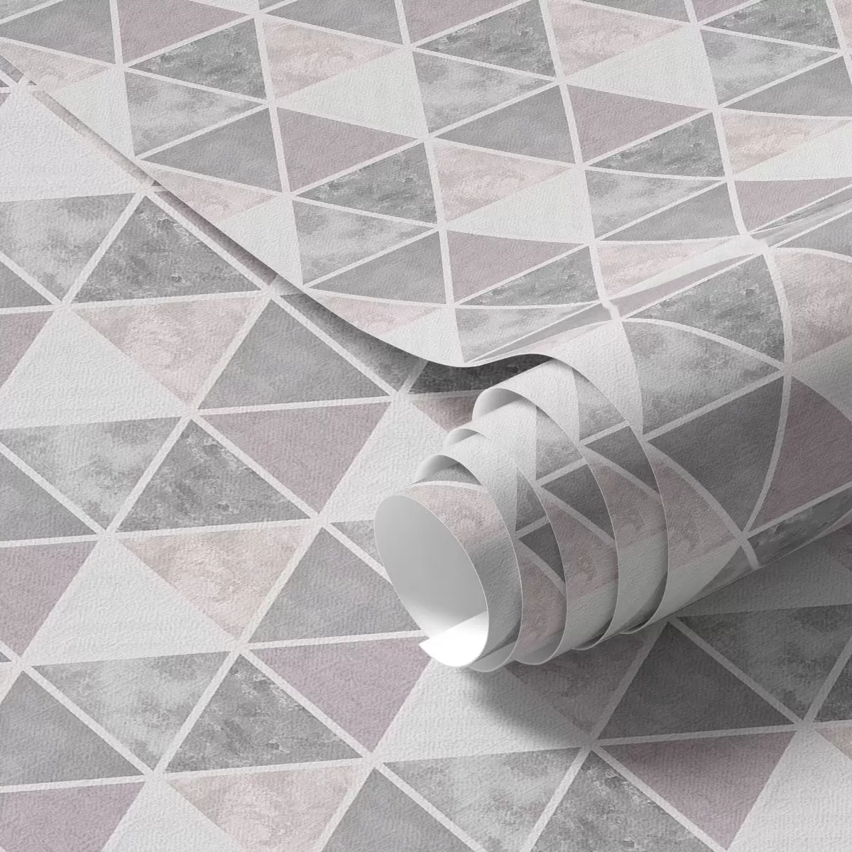 Tapeta Geometrični trikotni vzorec v sivih in prašnih odtenkih Št. a00920
