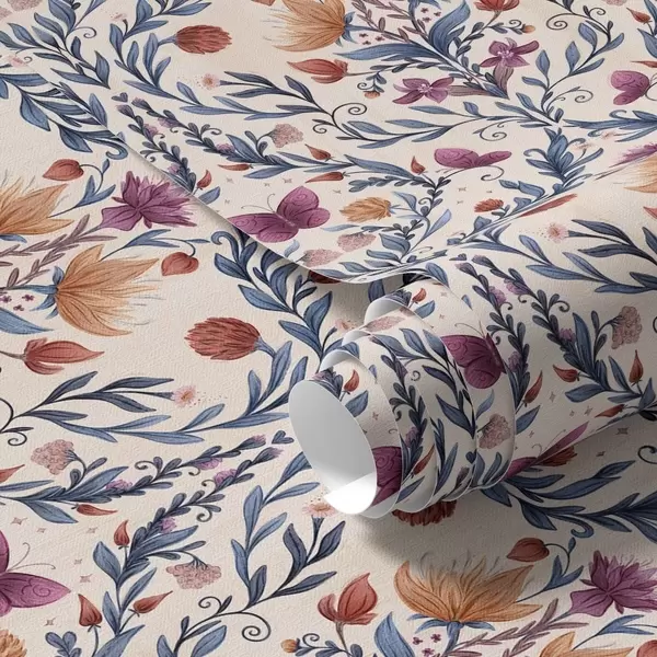 Tapeta Cvetlični damast z metulji na nežnem breskovem ozadju Št. a00926