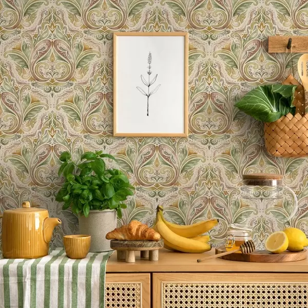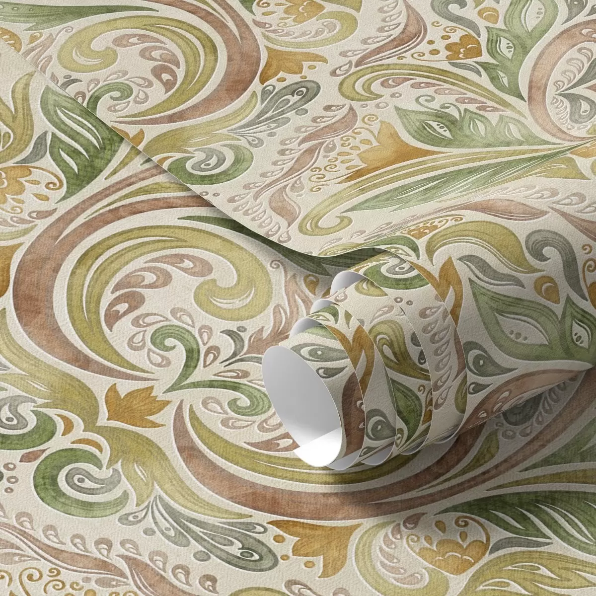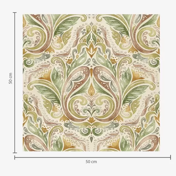 Tapeta Akrilne listnate vrtince v zelenih in toplih okrovih odtenkih Št. a00927
