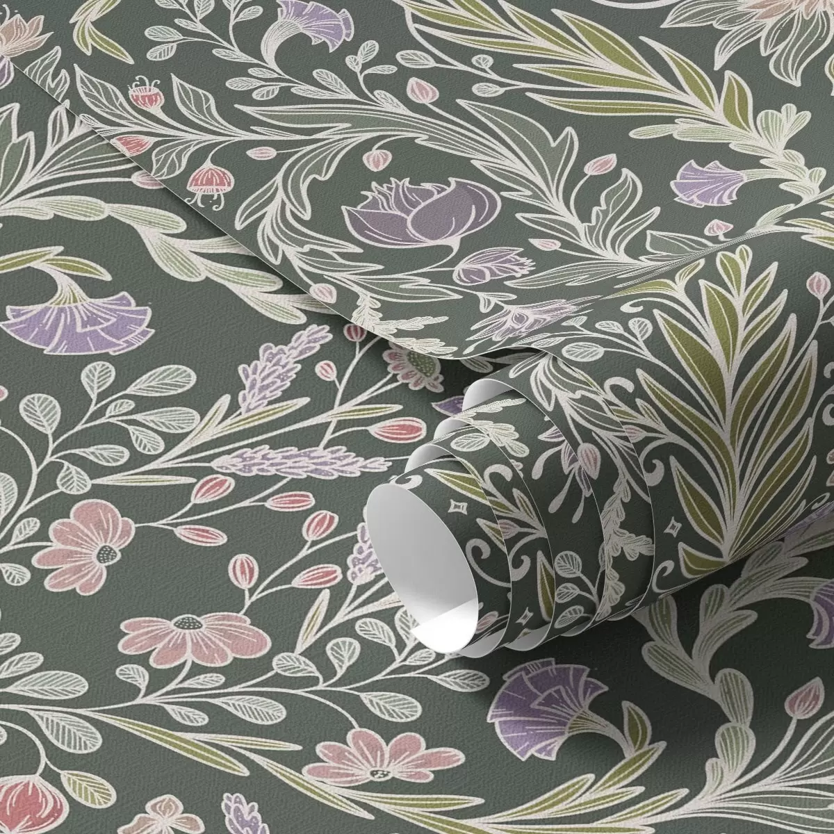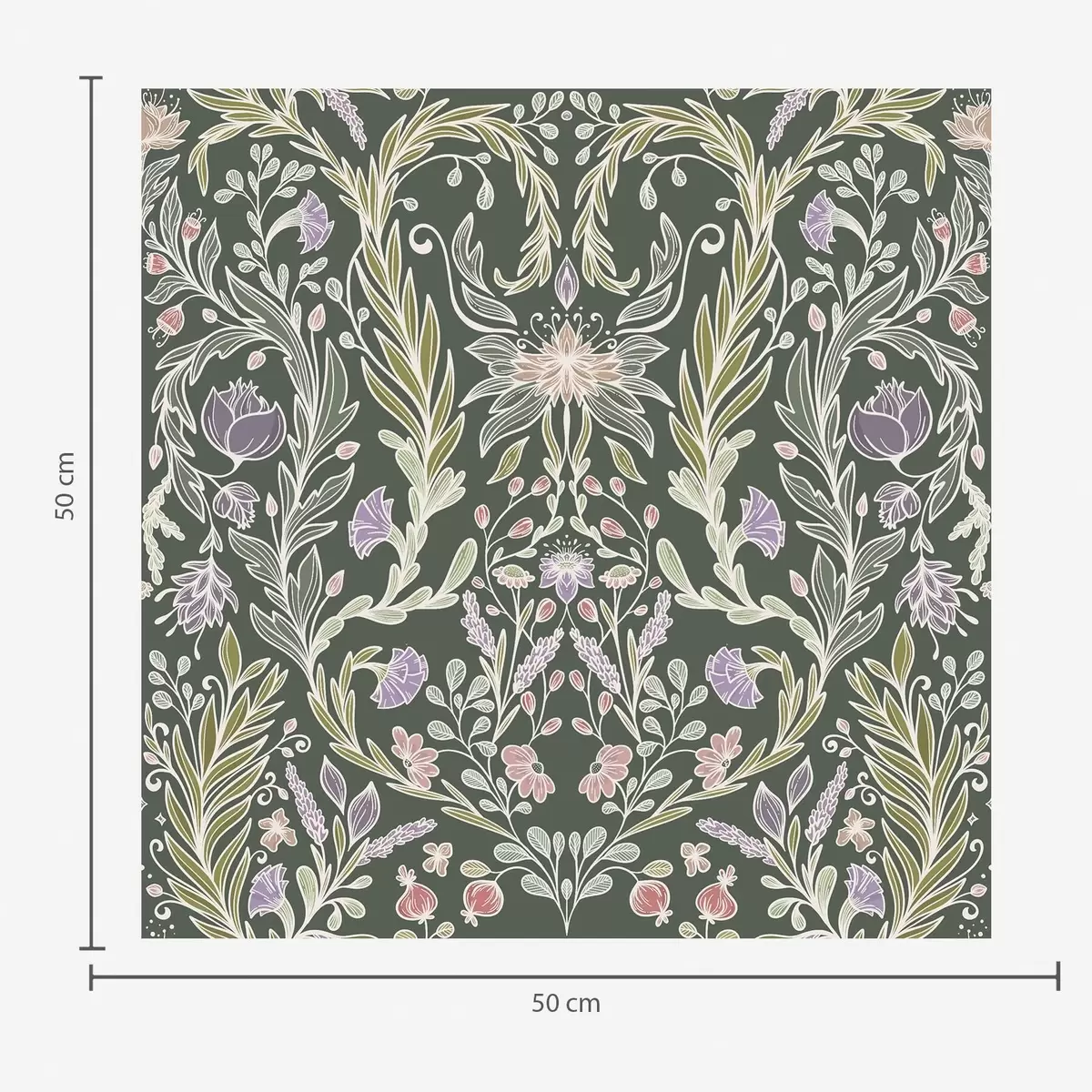 Tapeta Simetrični cvetlični ornament na temno zelenem ozadju Št. a00928