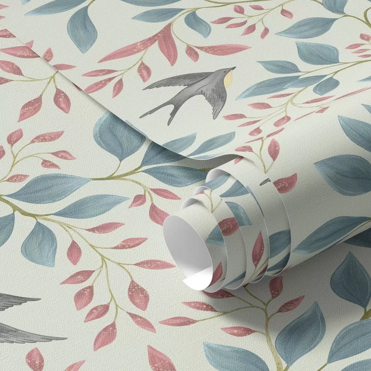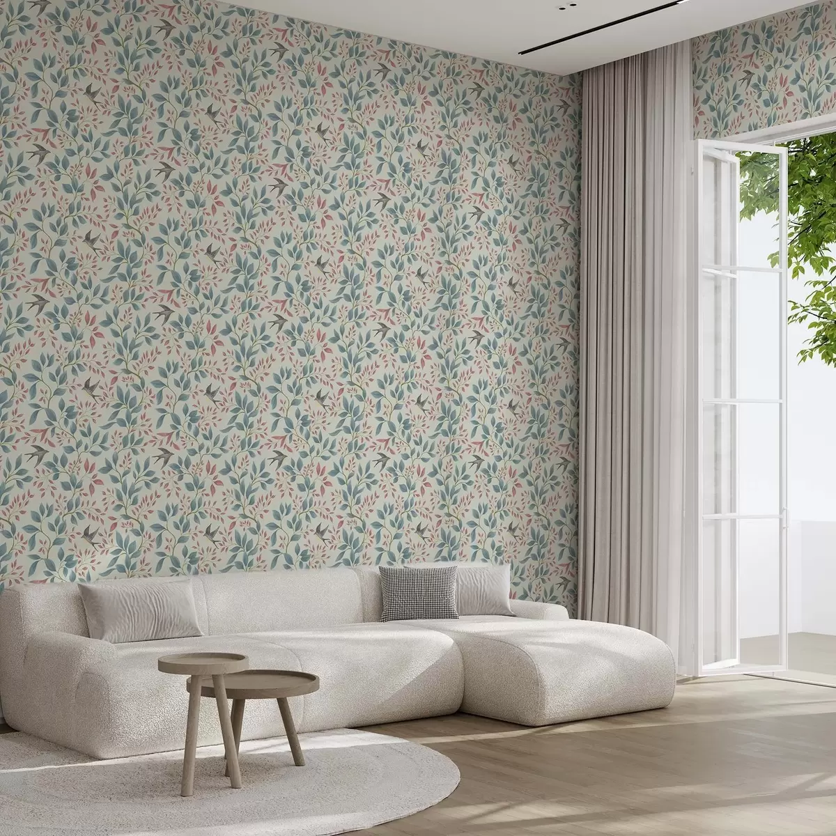 Tapeta Zračne veje in ptice na svetlem mintovem ozadju Št. a00933v1